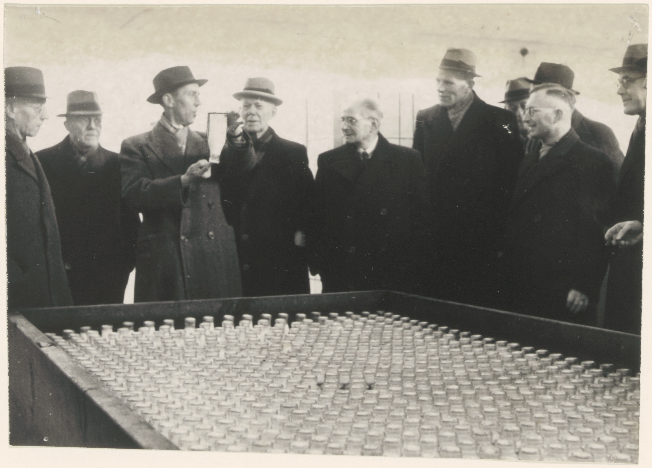 - Autoriteiten aan de melk tijdens de ingebruikneming van de Zuivelfabriek Sterovita aan de Weeskinderendijk.