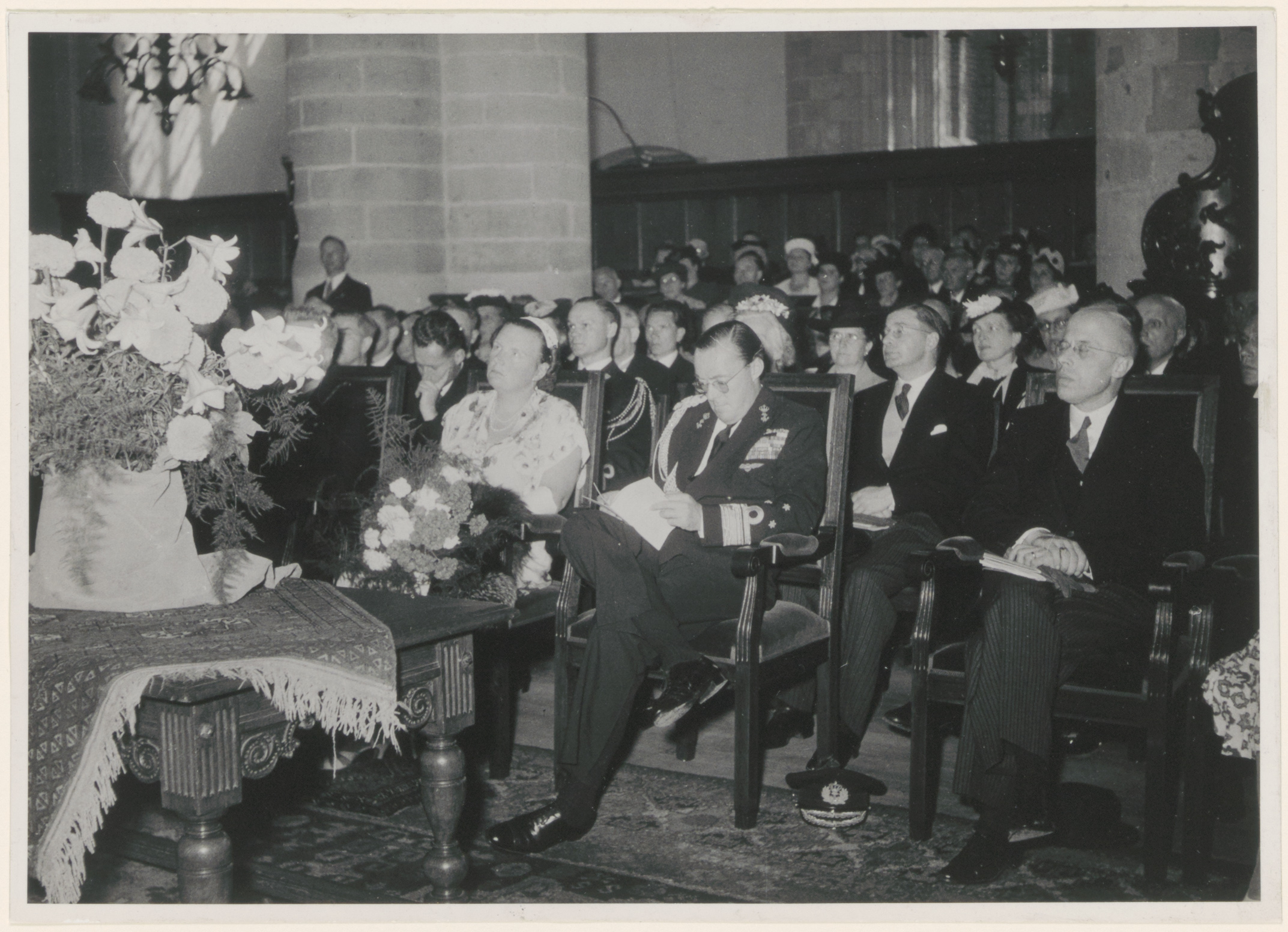 Koningin Juliana en Prins Bernhard in de Grote Kerk tijdens de eerste Hoffeesten.