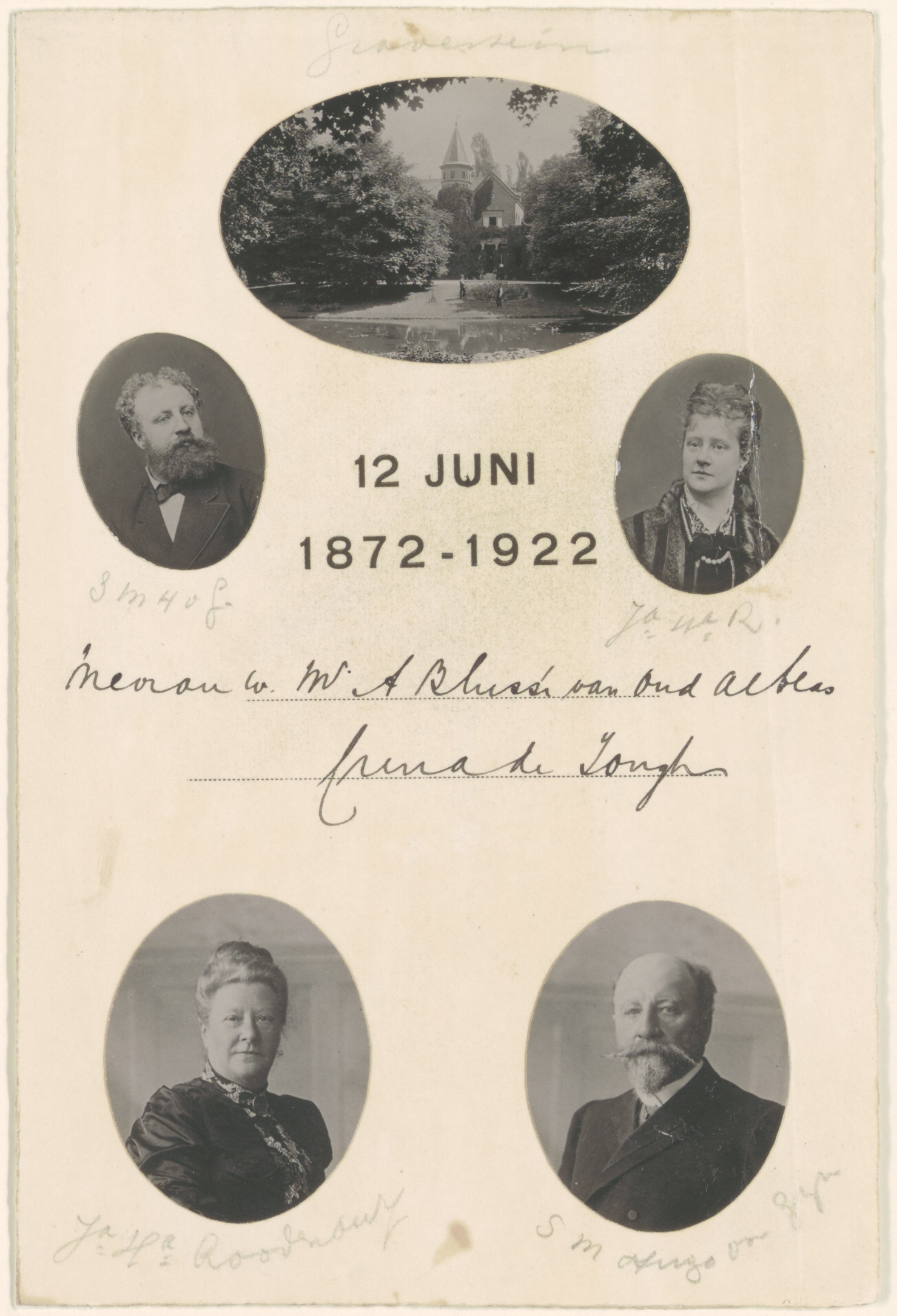 - Vier portretten, waarvan twee uit 1872 en twee uit 1922, met een gezicht op de buitenplaats Gravesteijn