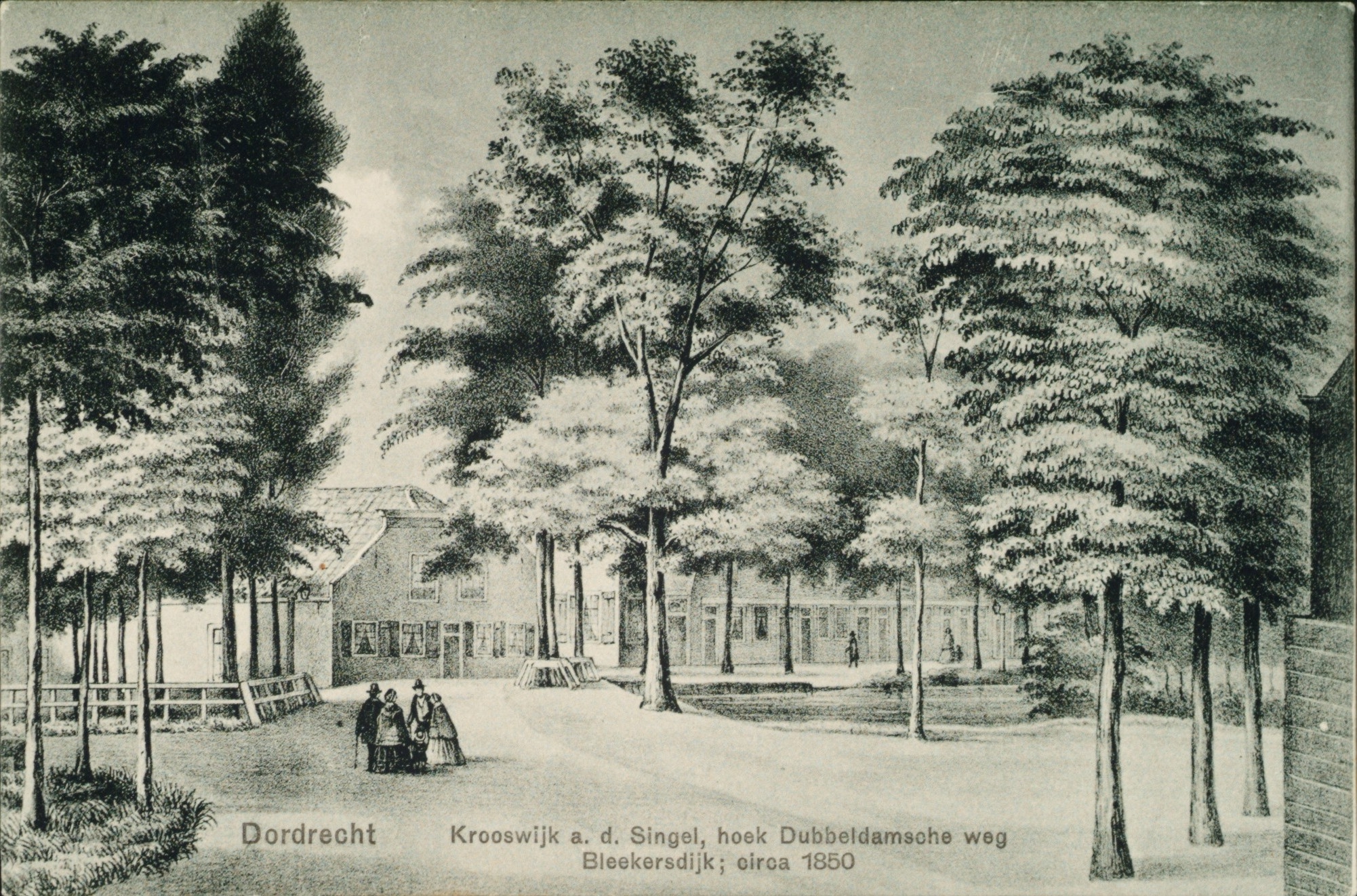 - Tekening door J.H. van der Heyden van Krooswijk aan de Nicolaas Maessingel, hoek Blekersdijk/Dubbeldamseweg Noord.