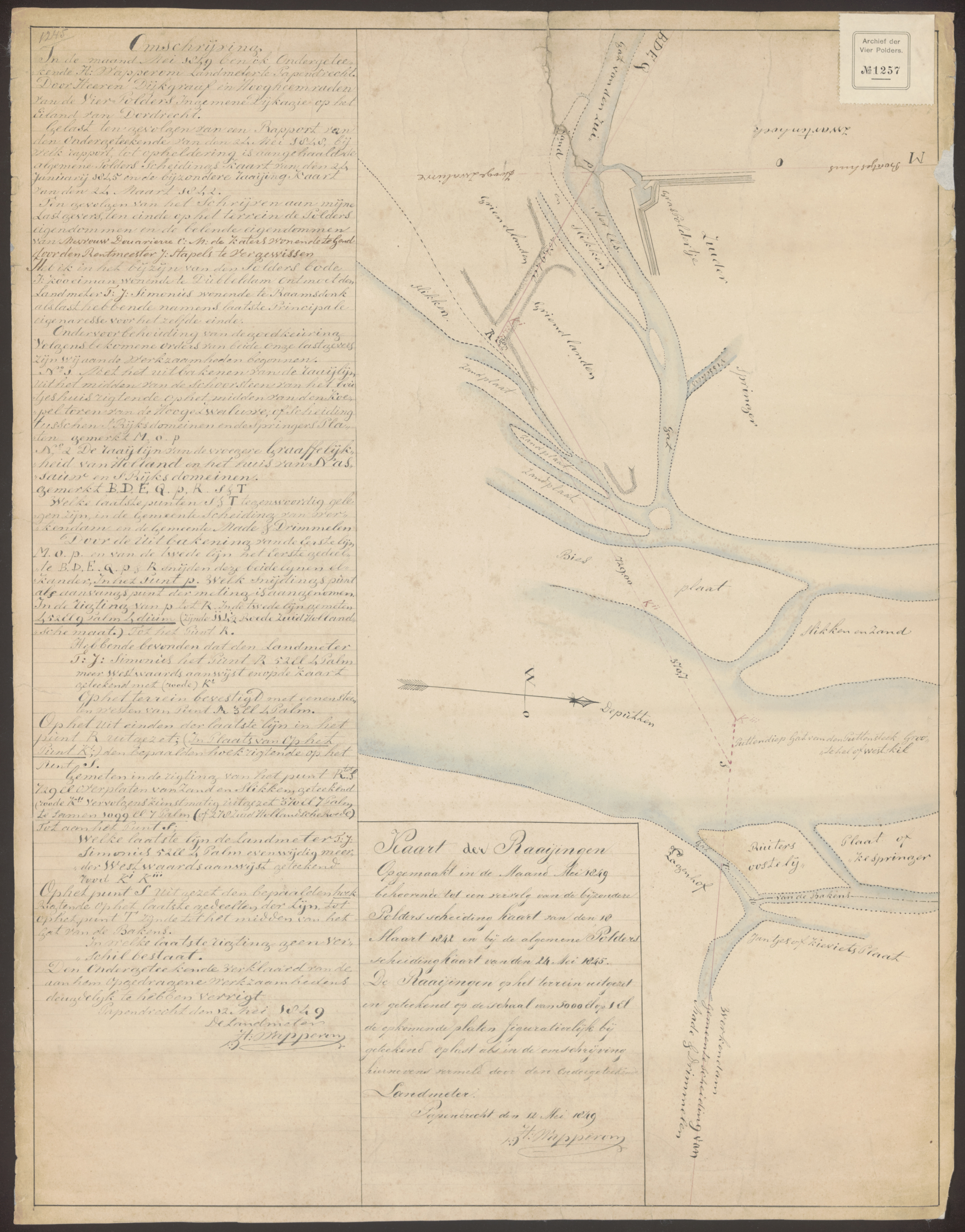 Kaart van het raaien van de Springer en Ruiterplaten opgemeten, door H. Wapperom, 1849