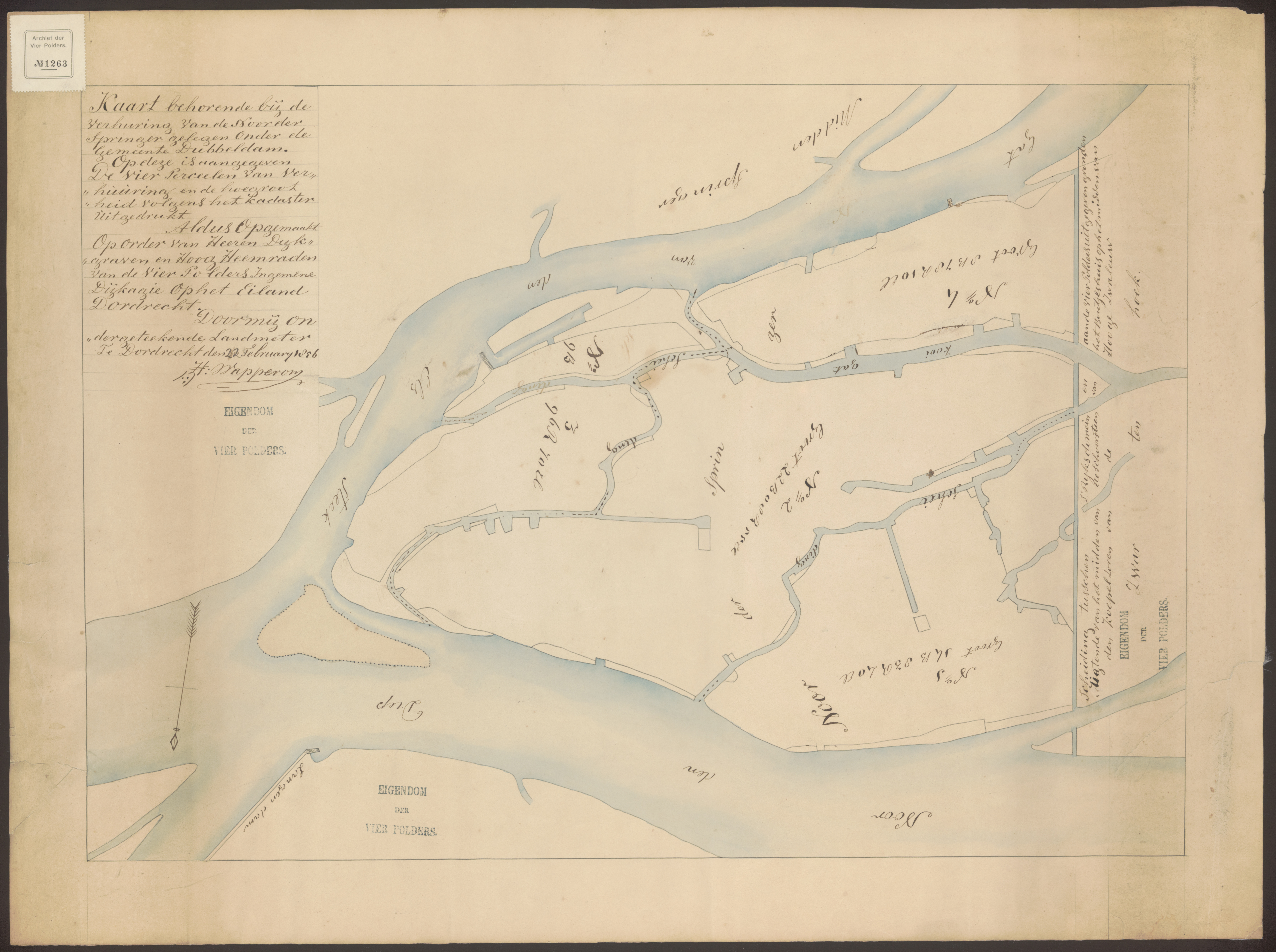 Kaart behorende bij de verhuring van de Noorder Springer gelegen onder de gemeente Dubbeldam