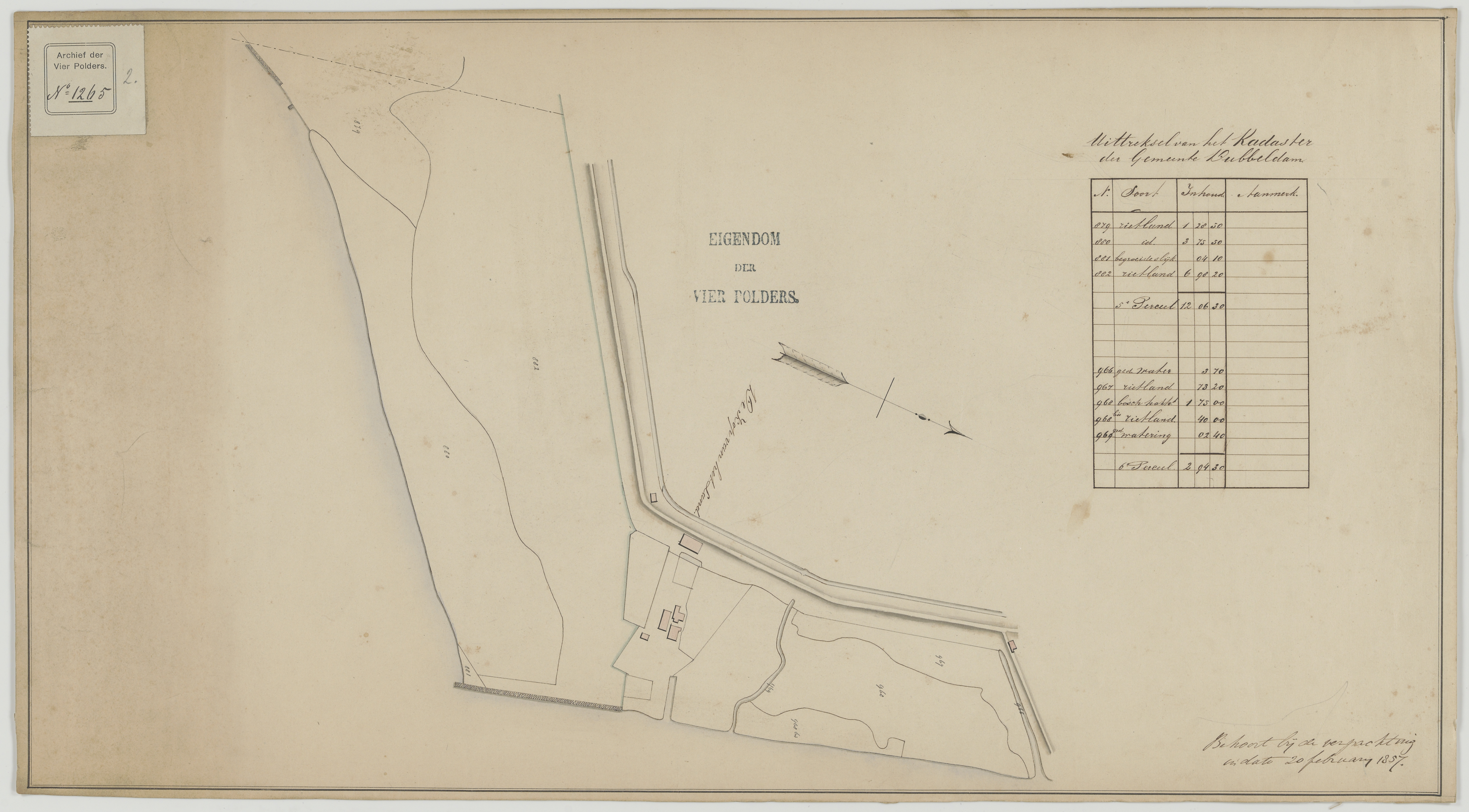 - Kaart van het gebied gelegen rond de Kop van 't Land, opgemaakt ten behoeve van de verpachting in 1857