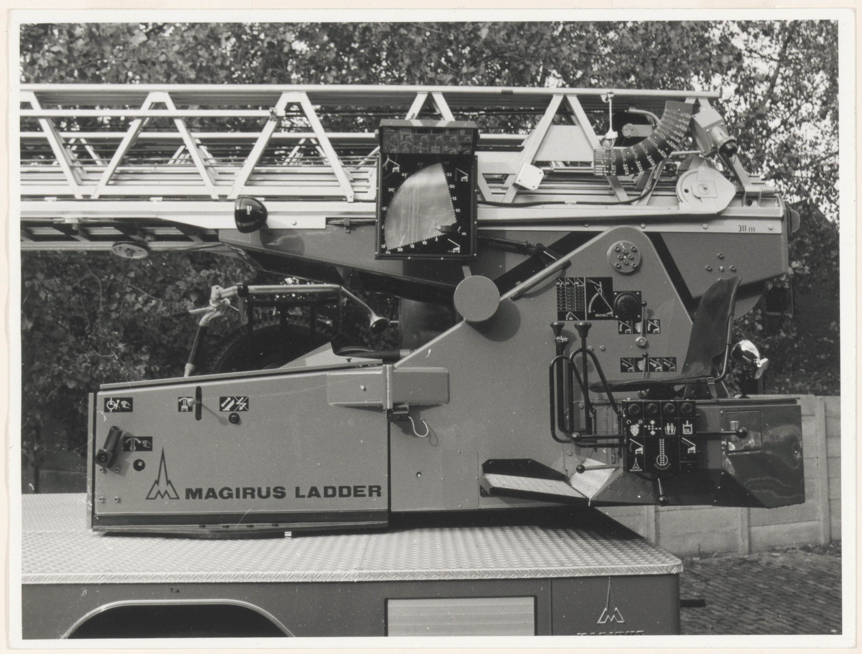 - Ladderlengte 30 meter; van 3 plaatsen bedienbaar: ernaast staand, erin zittend en vanuit de gondel.