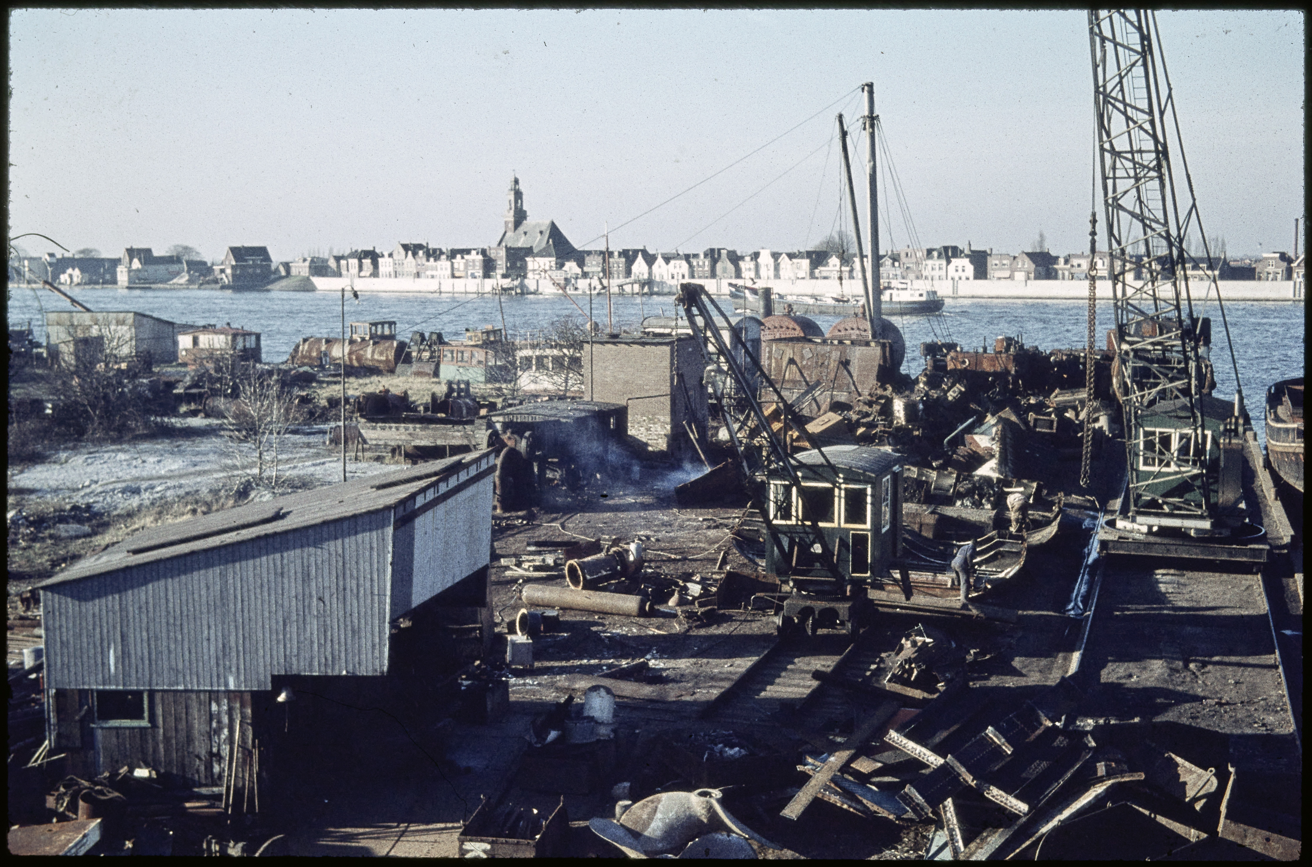 - Scheepssloperij De Koophandel aan de Lekdijk in Nieuw-Lekkerland. Aan de overkant van de Lek de Johanneskerk en de Voorstraat in Lekkerkerk.