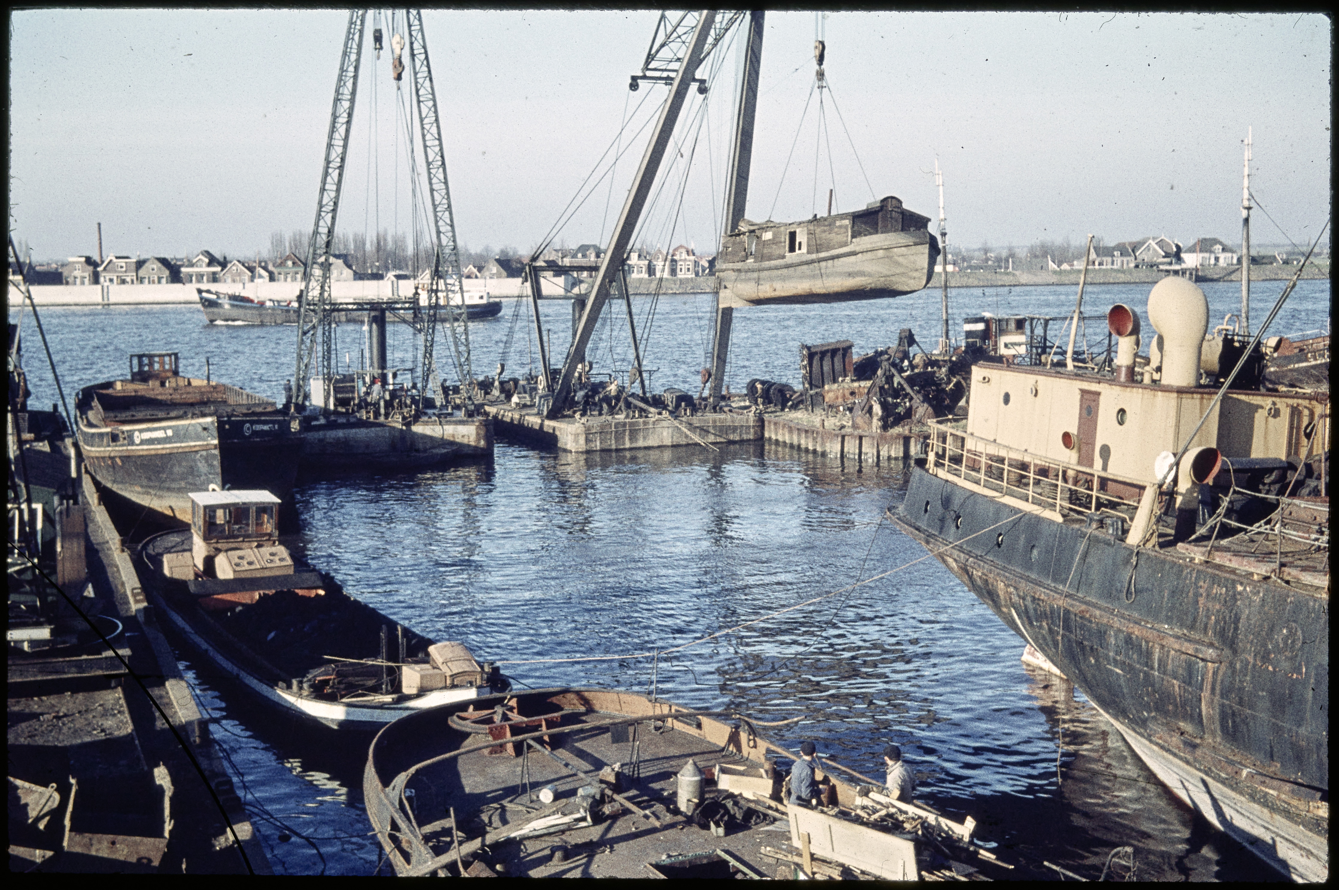 Scheepssloperij De Koophandel aan de Lekdijk in Nieuw-Lekkerland. Aan de overkant van …