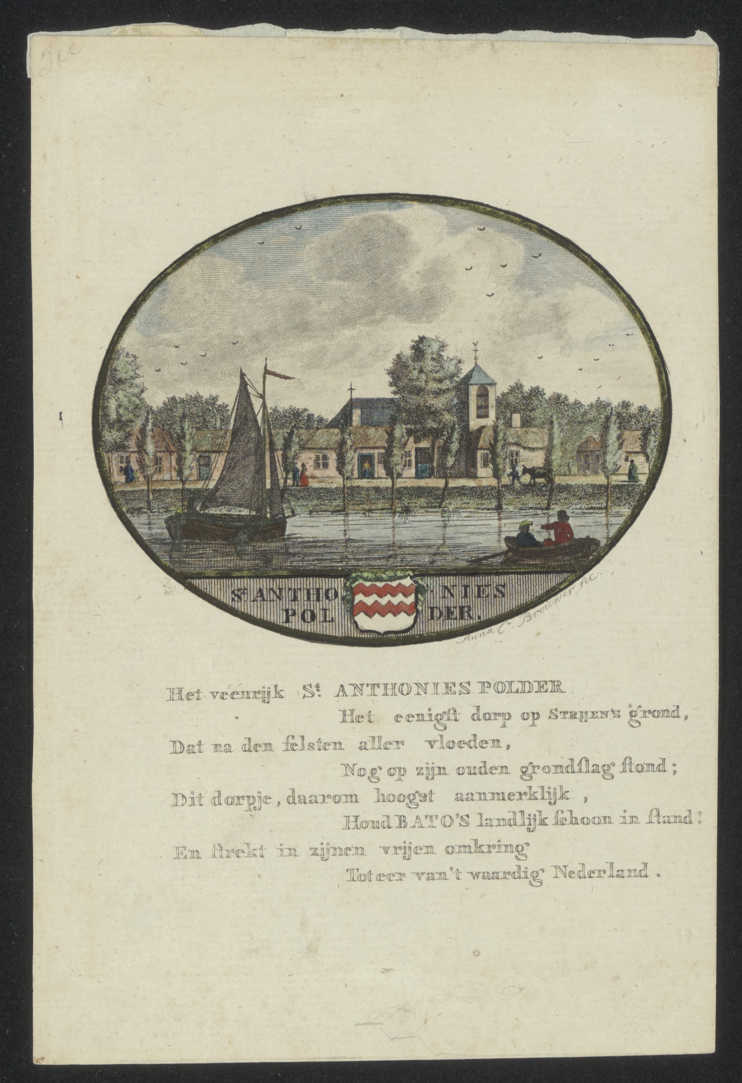 Litho St.Antoniespolder't Dorp 's Gravendeel tekenaar Johannes van Diepenhuijsen. (Anna Brouwer).