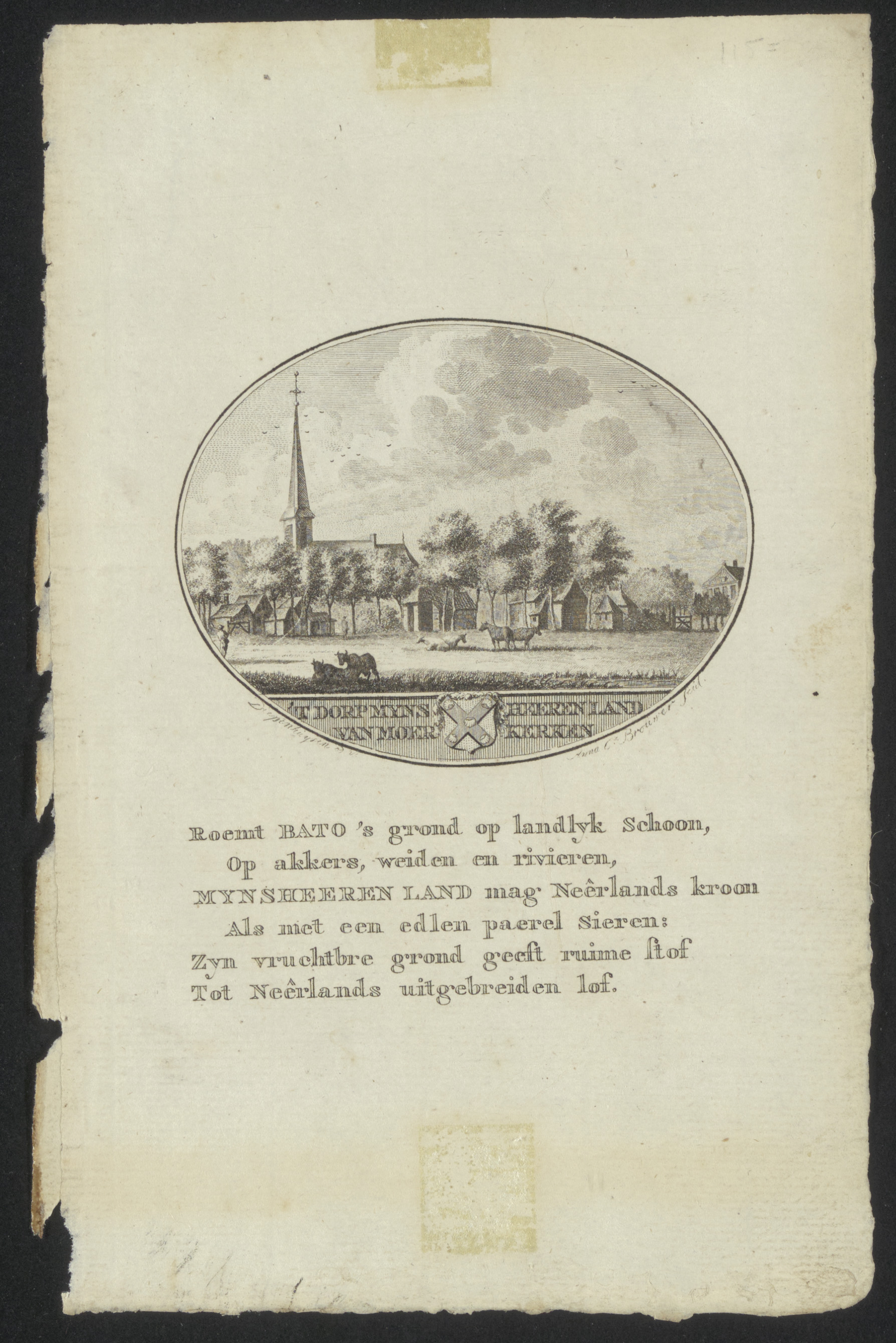 Litho 't Dorp Mijnsheerenland van Moerkerken tekenaar Johannes van Diepenhuijsen.