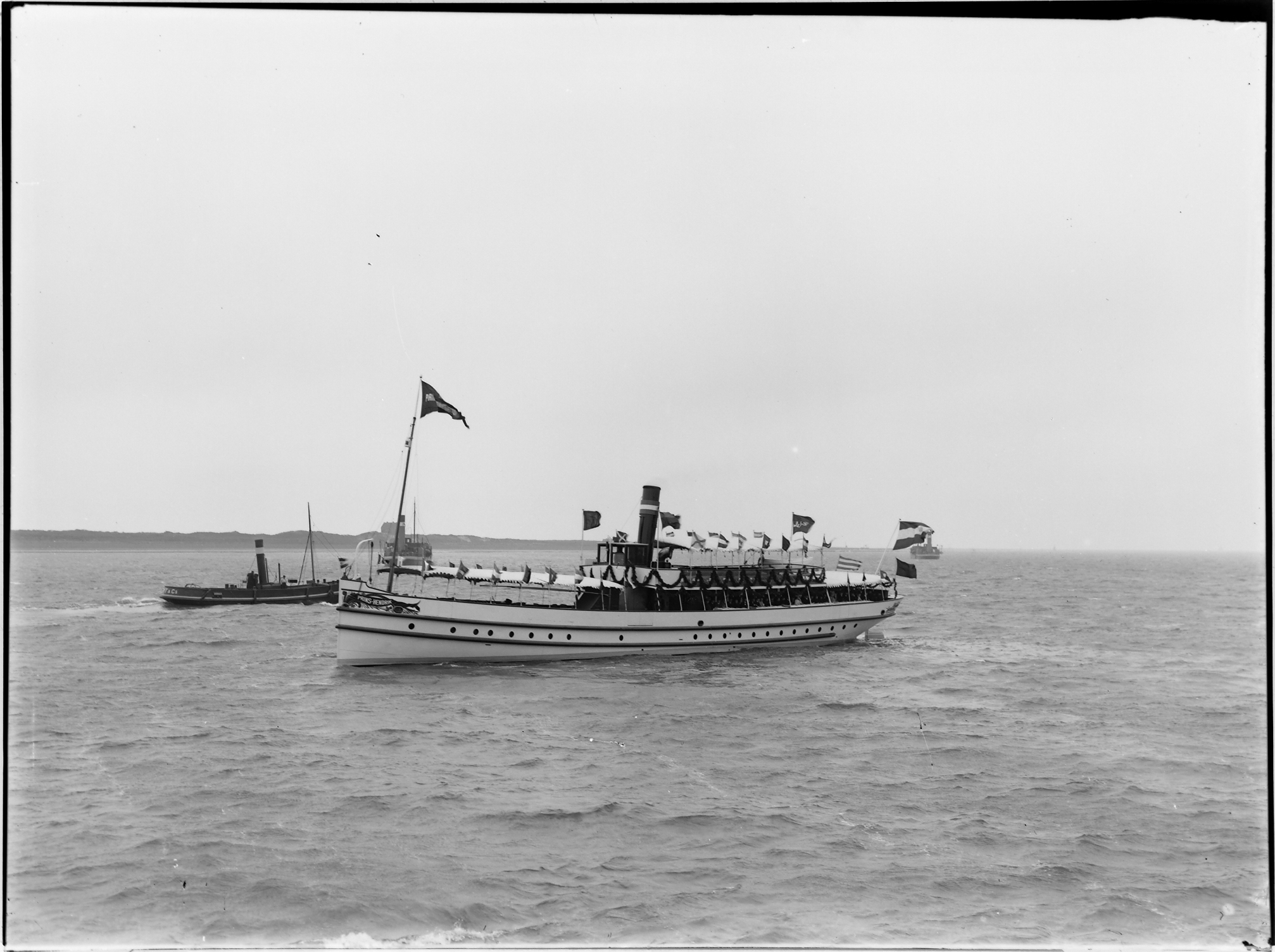 - Stoomboot Prins Hendrik op een rivier met hoge oever