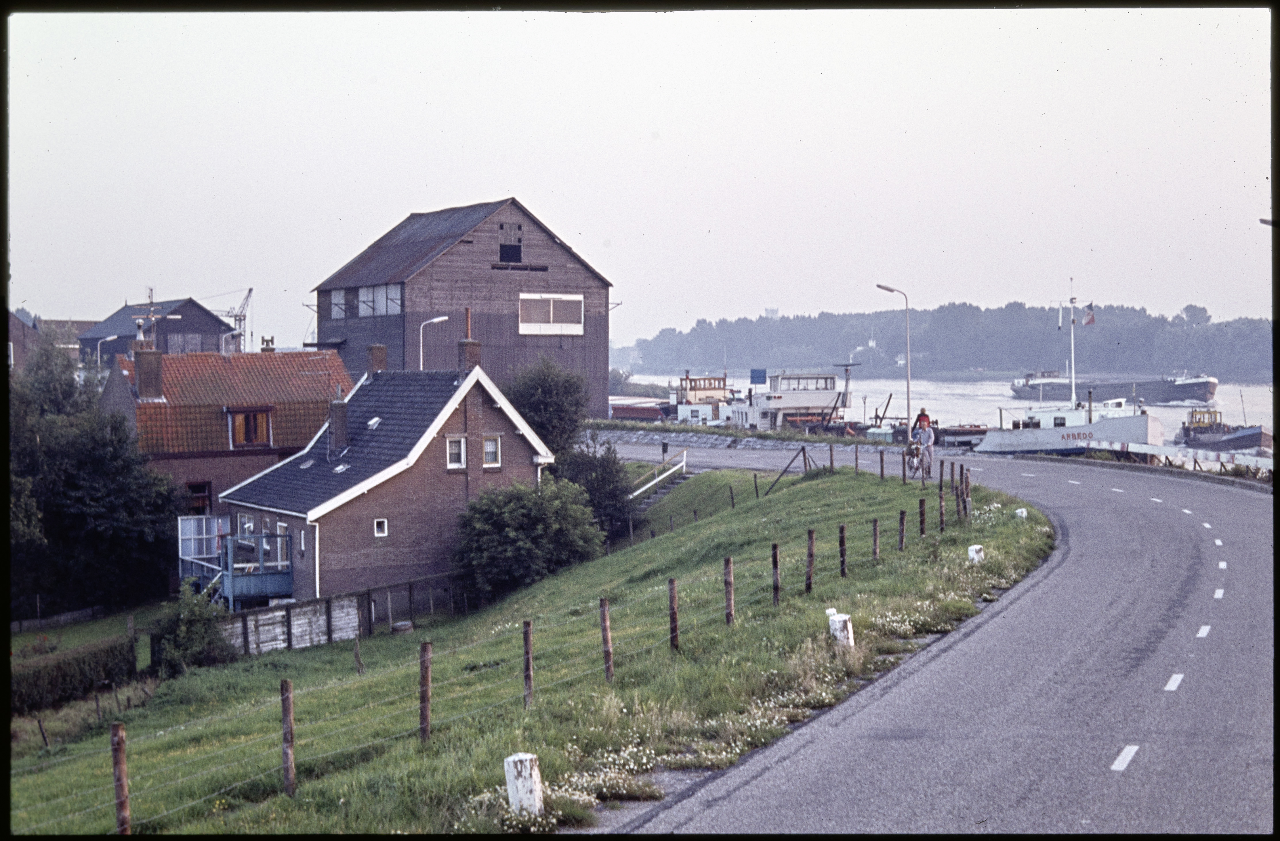 Westeind met rechts De Noord.,waar de grote loods staat is nu rechts de Industrieweg in Papendrecht.