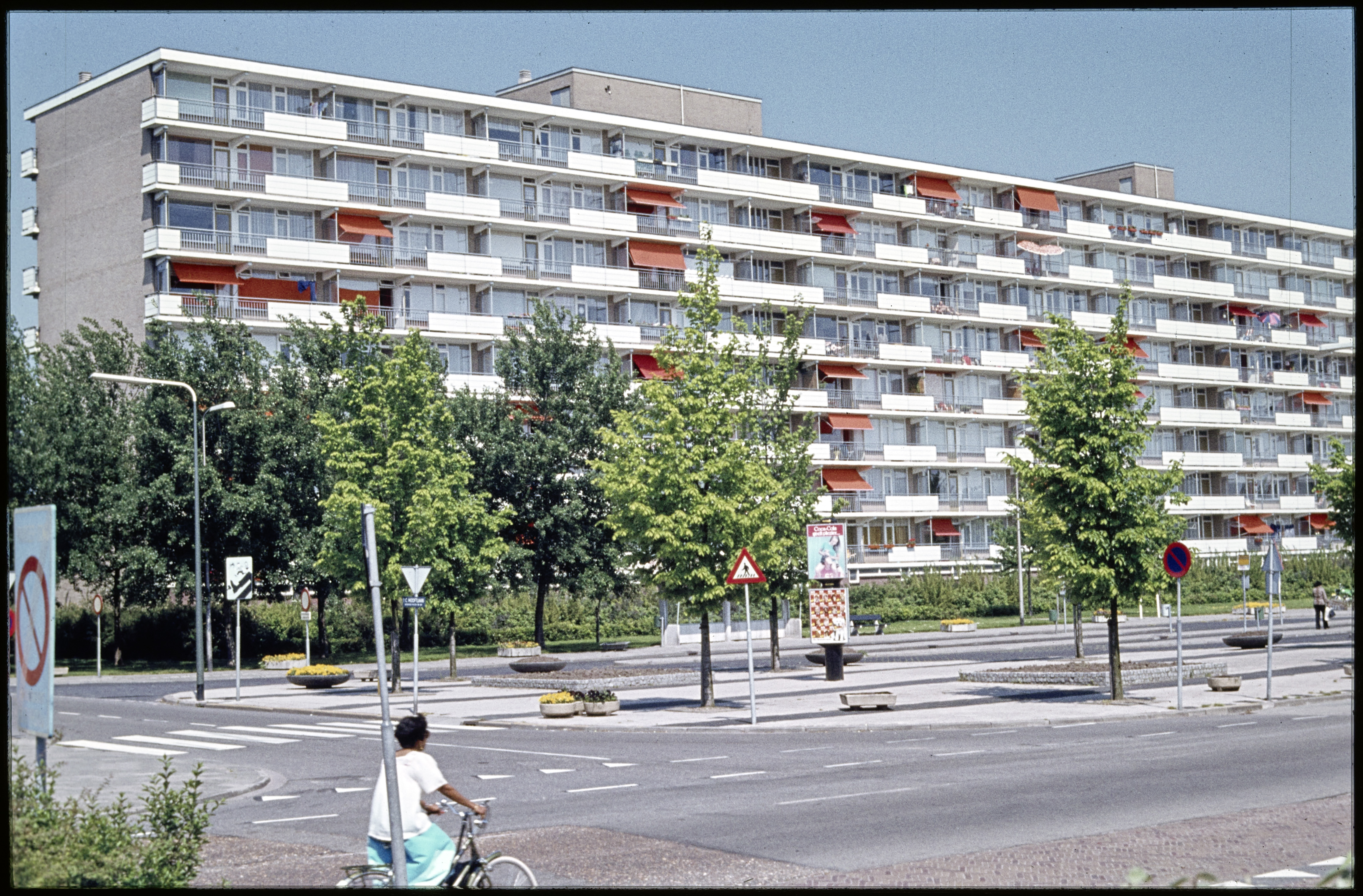 - Flatgebouw aan Den Briel op de hoek van de P.C. Hooftlaan (links), gezien vanaf de Veerweg in Papendrecht.