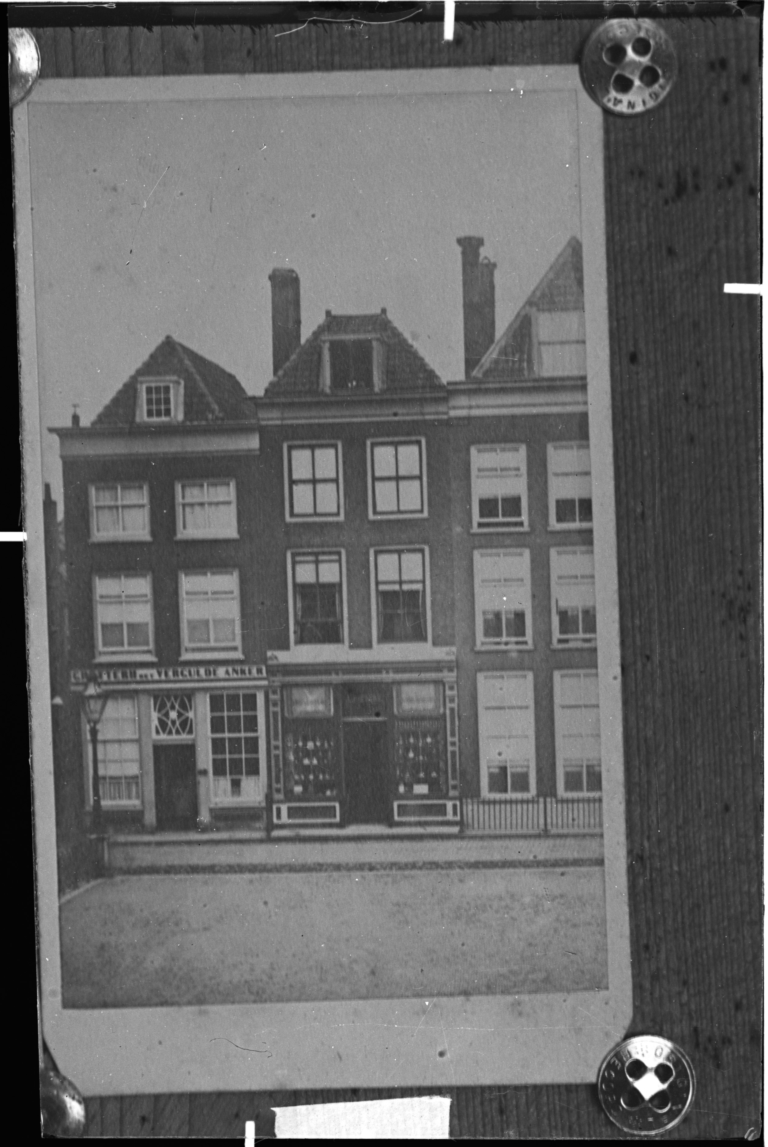 - Links grutterij Het Vergulde Anker aan de Voorstraat op hoek van de Kolfstraat, gezien vanaf het Scheffersplein.