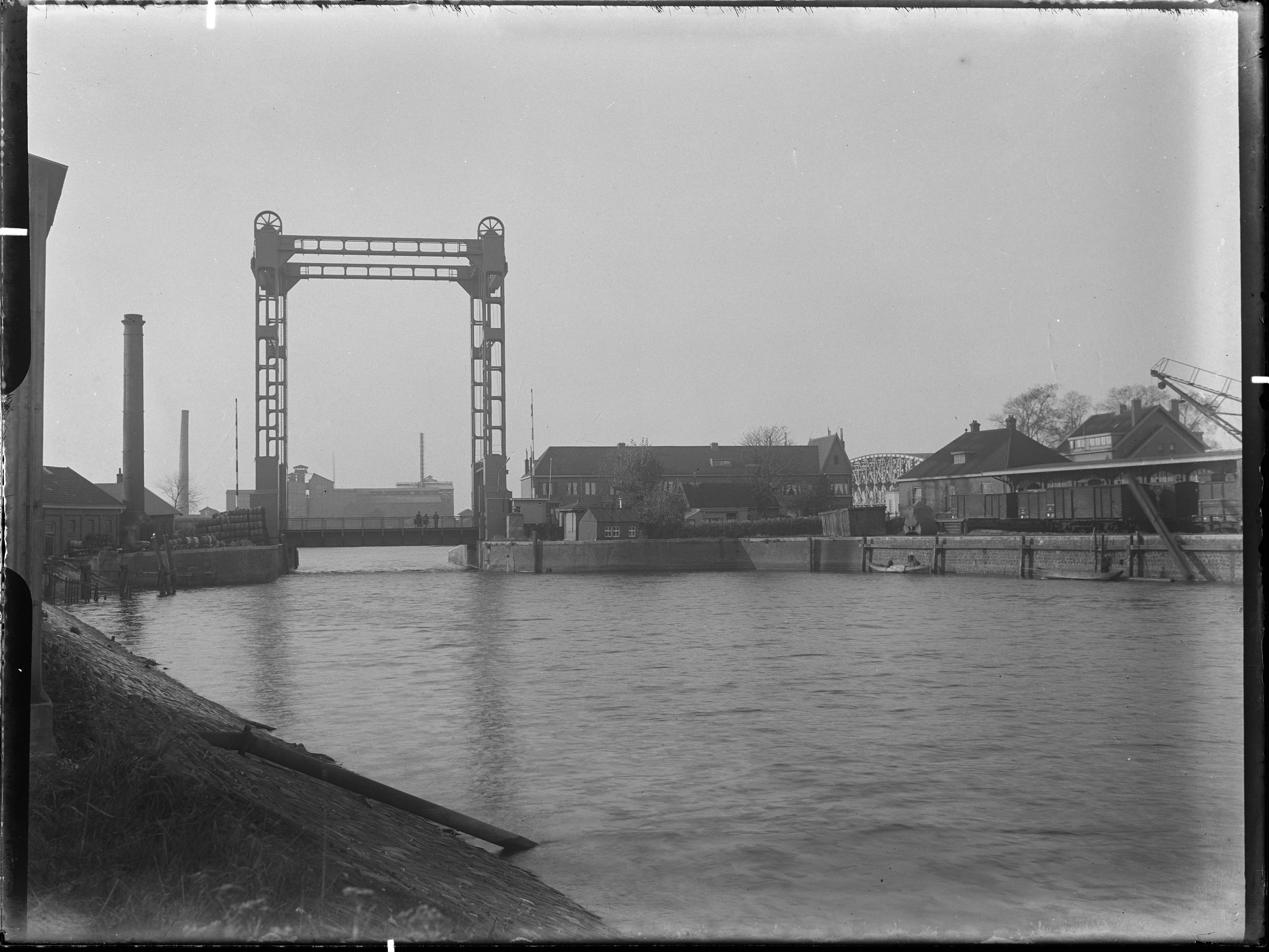 De Dokbrug over de Spoorweghaven. Rechts de Dokweg en een glimp van de spoorbrug naar …