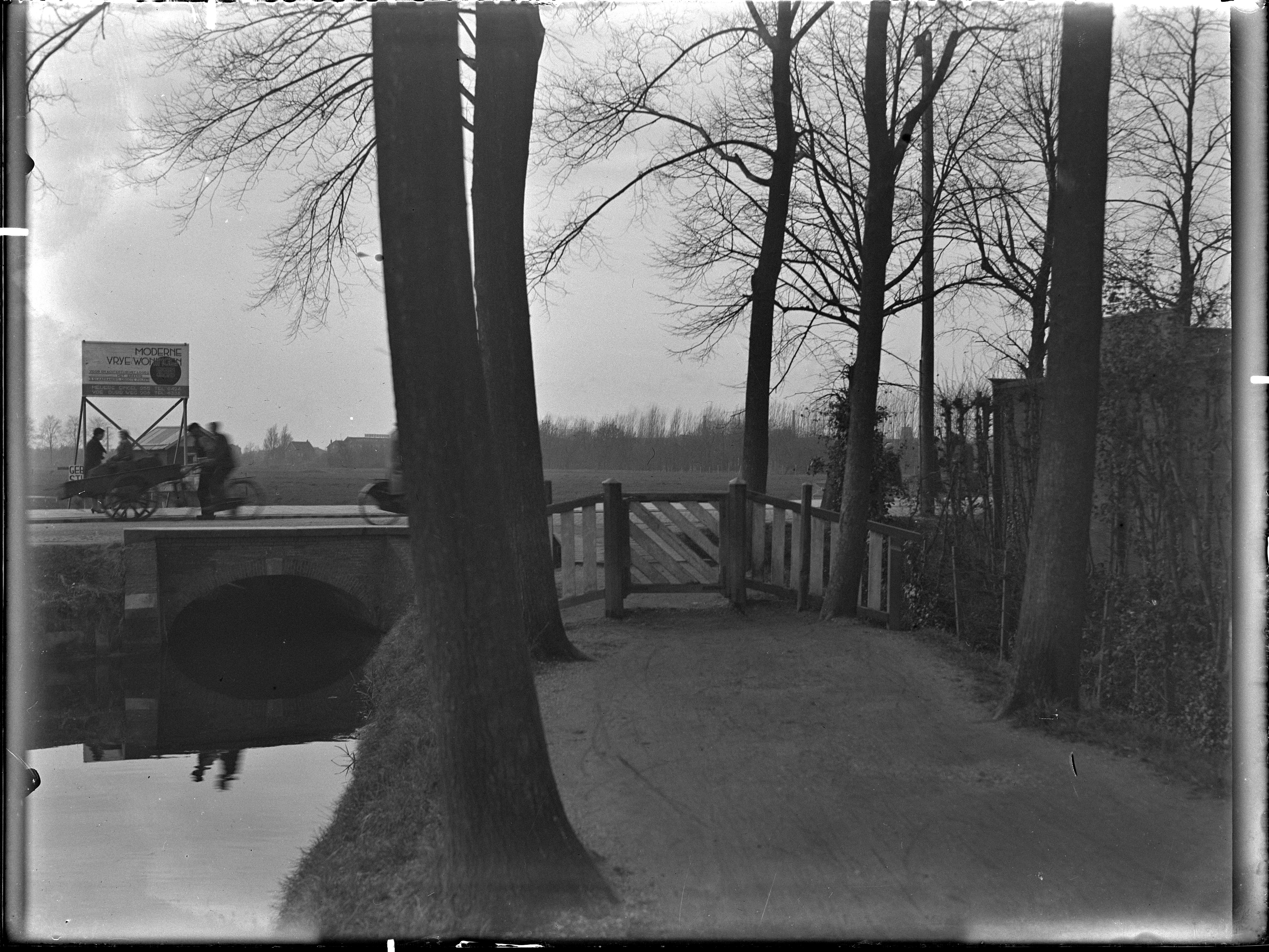 Krispijnseweg, hek Bonenpaadje / Bonenpad (richting Watermolenweide) (bord 'Moderne vrije woningen voor en achtertuin met loods met erkers 3 slaapkamers groote zolder, Meijers Singel tel. 6424, VOC Dubbeldamseweg tel. 6338')