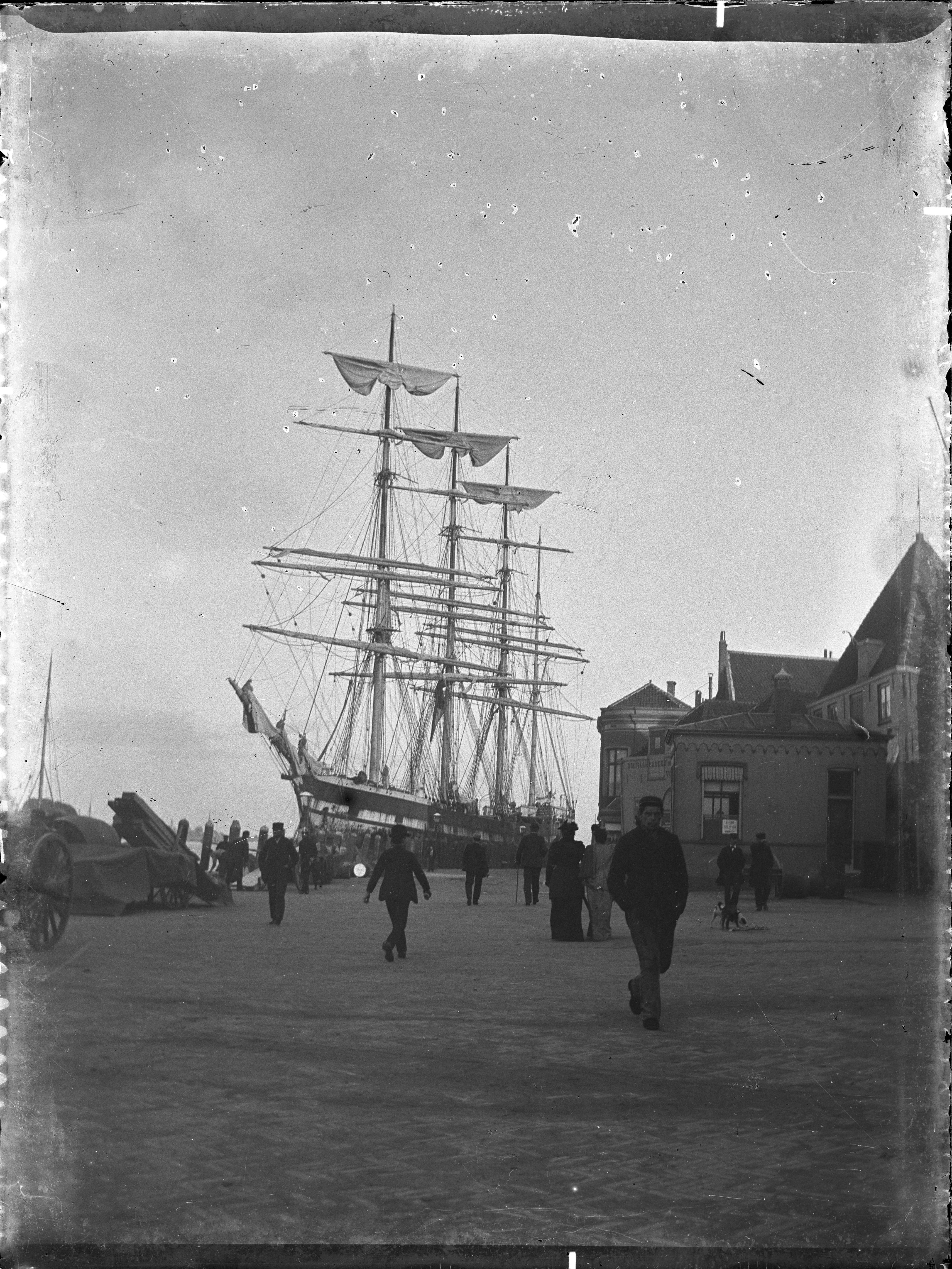 Viermaster aan de Merwekade, gezien vanaf het Bolwerk naar het oosten.