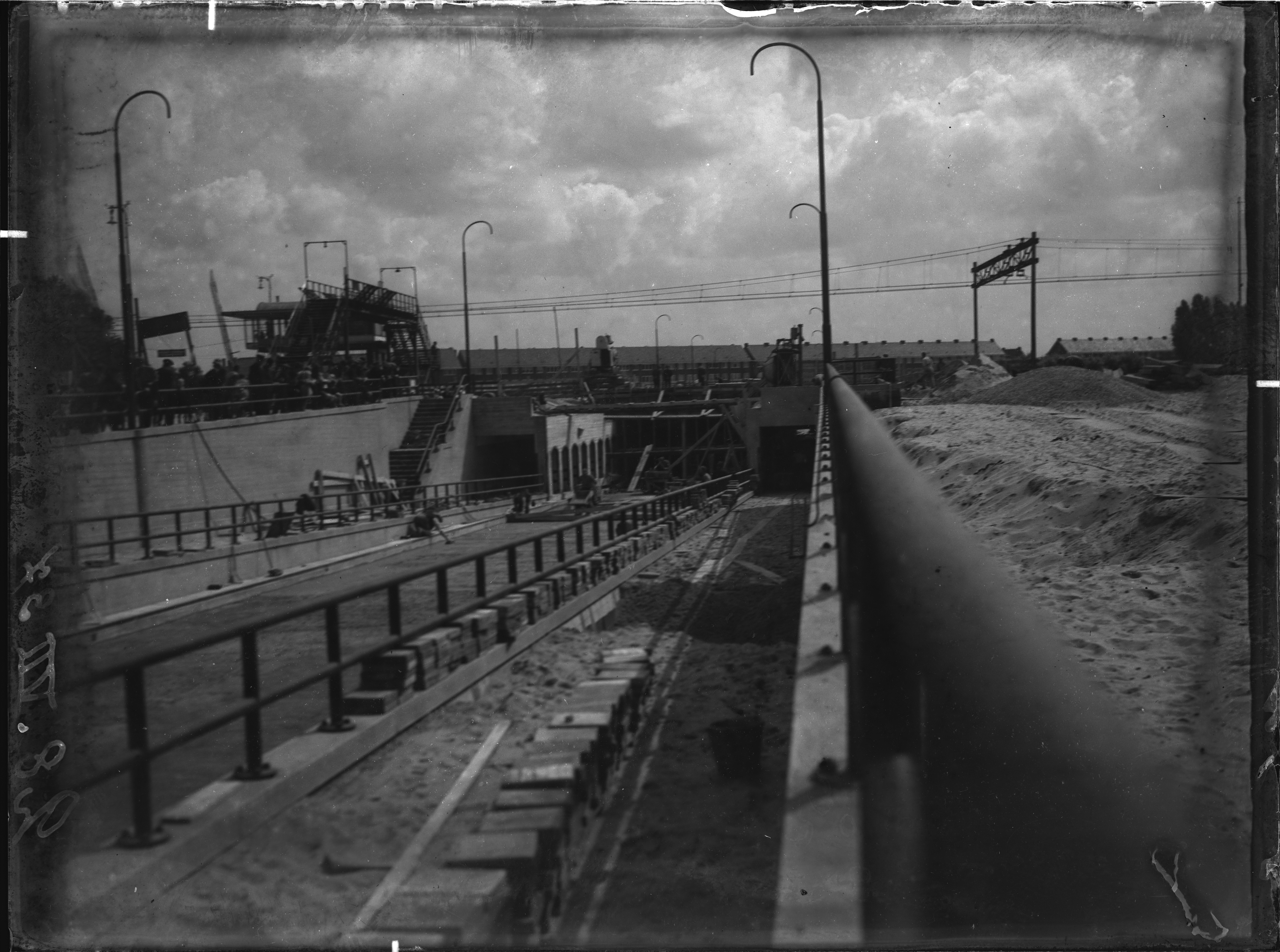 Bouw van de Krispijntunnel aan de zijde van de Spuiweg.