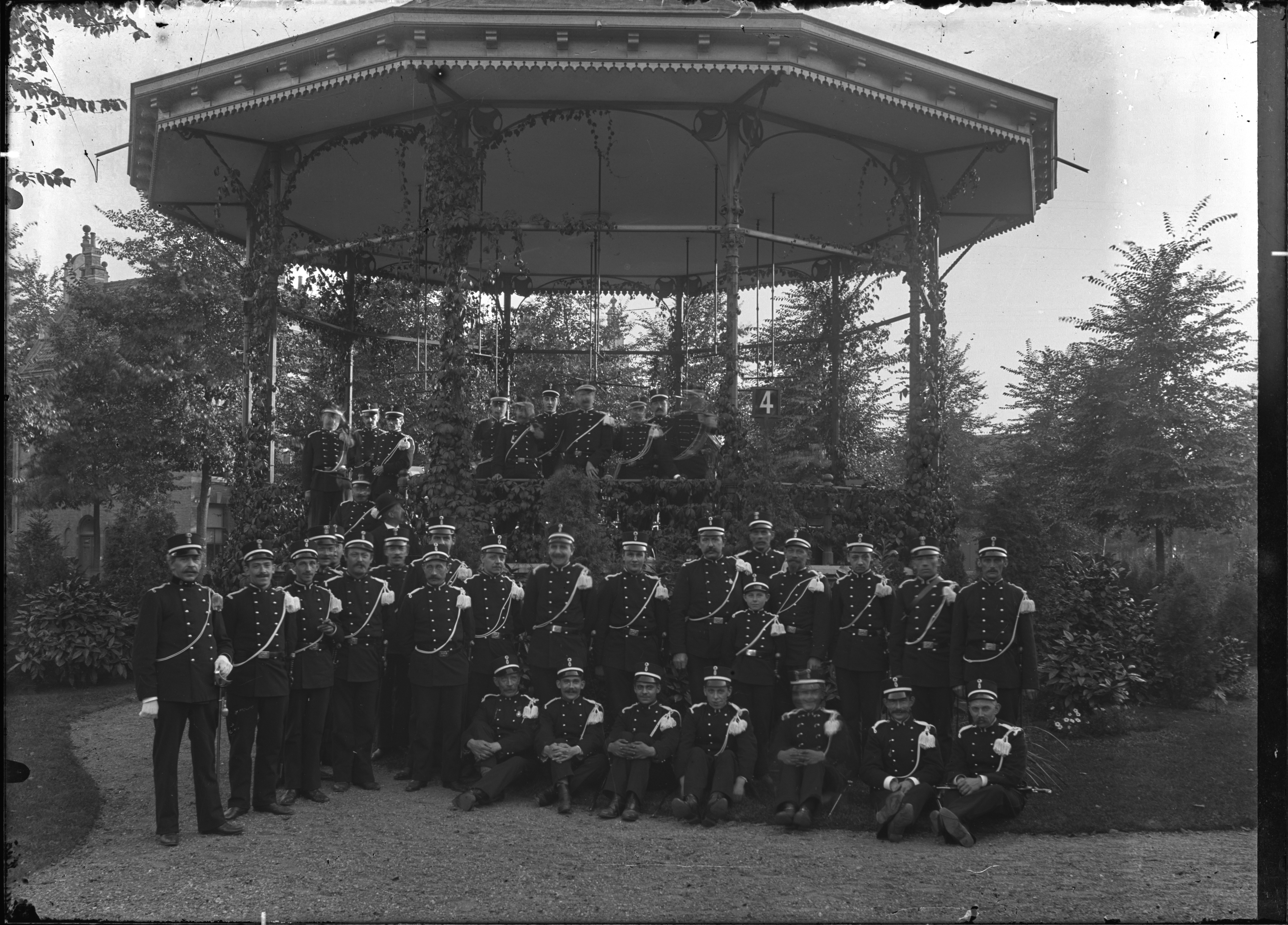 - Muziekkorps van de Dordrechtse Schutterij bij de muziektent in het Oranjepark.