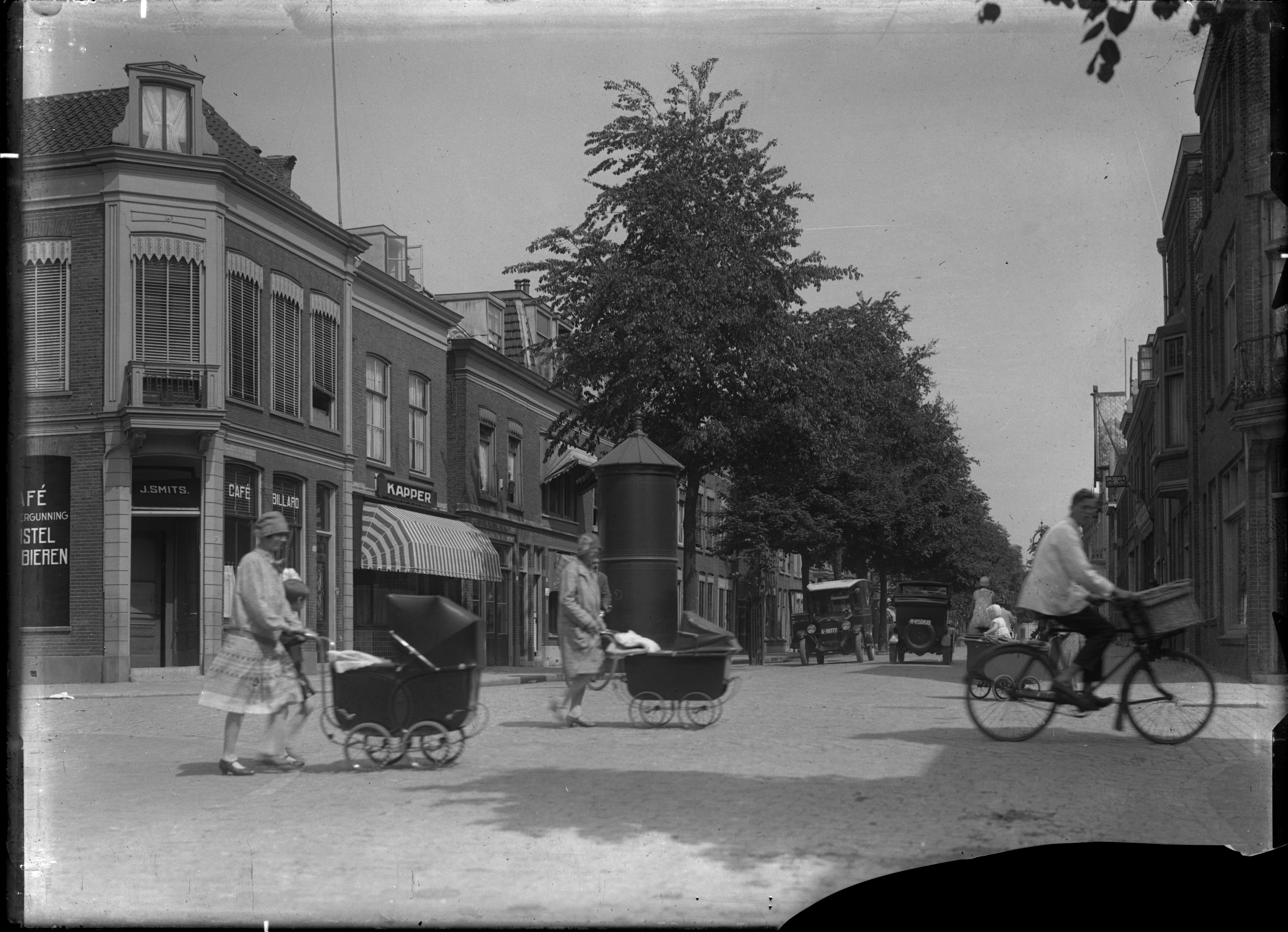 - cafés fietsers kappers / kapsalons kinderwagens oldtimers peperbussen / reclamezuilen voetgangers zonweringen