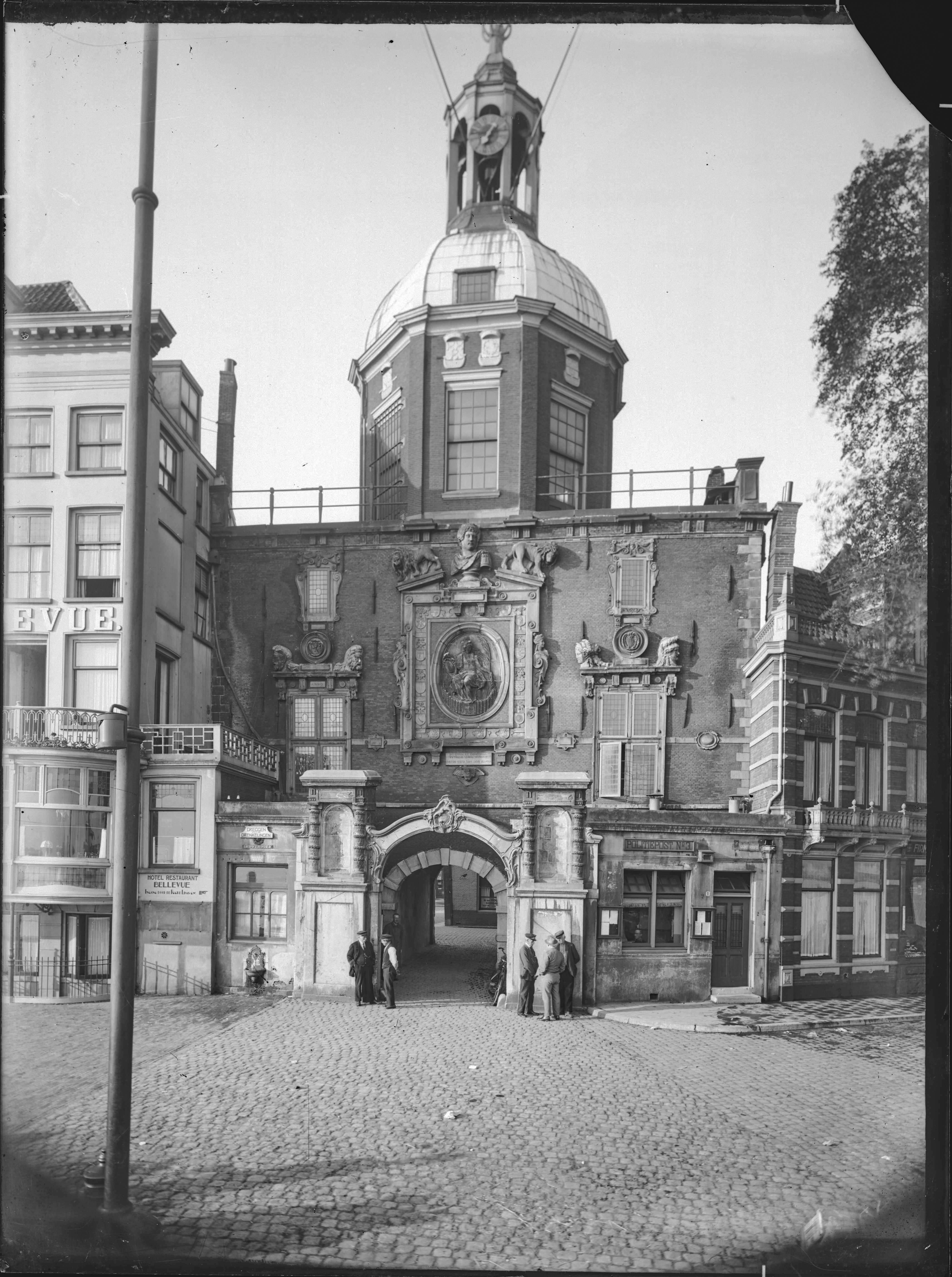 - Groothoofdspoort aan de rivierzijde. Links Hotel Bellevue, rechts van de poort een politiepost.