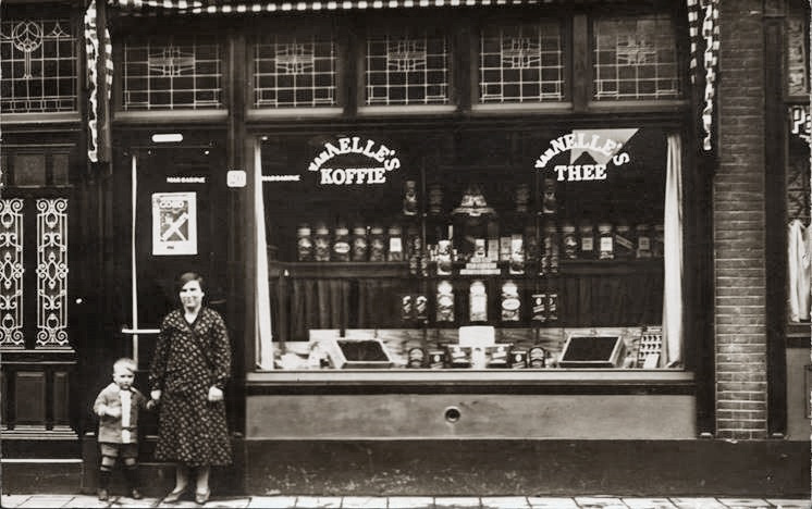 Mijn opa Huibert Koopman (1884-1970) was grossier en had een winkel in de museumstraat toen waarschijnlijk nummer 22 en woonde erboven op 20, nu nummer 30. Ik denk dat de foto in 1929/1930 gemaakt is.