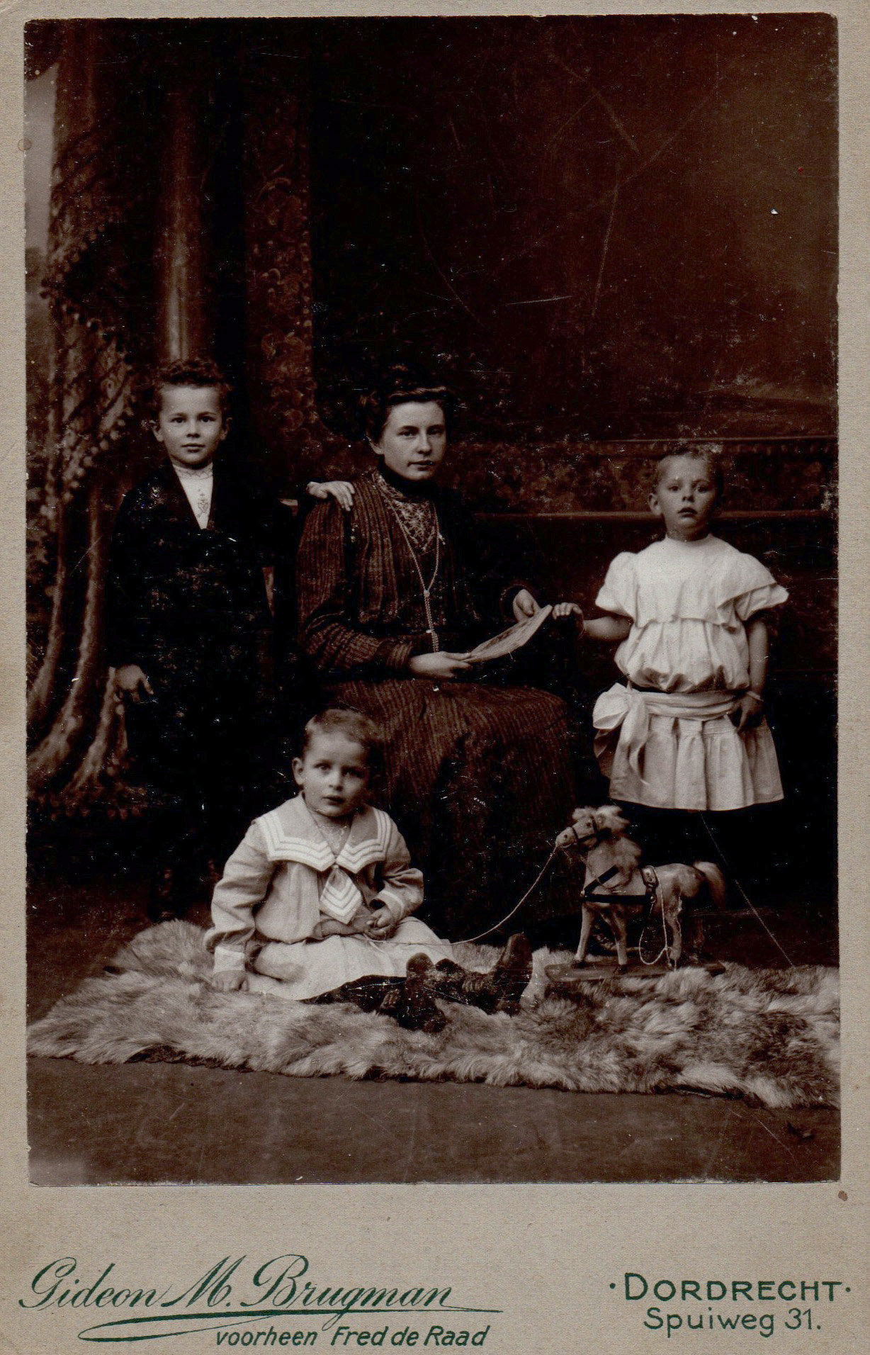 - Groepsportret van van links naar rechts: Nicolaas Jan van Wageningen (1901-1964), Aukje Oreel (1870-1952), Catharina van Wageningen (1902-1982), en zittend Jan van Wageningen (1903-1980)