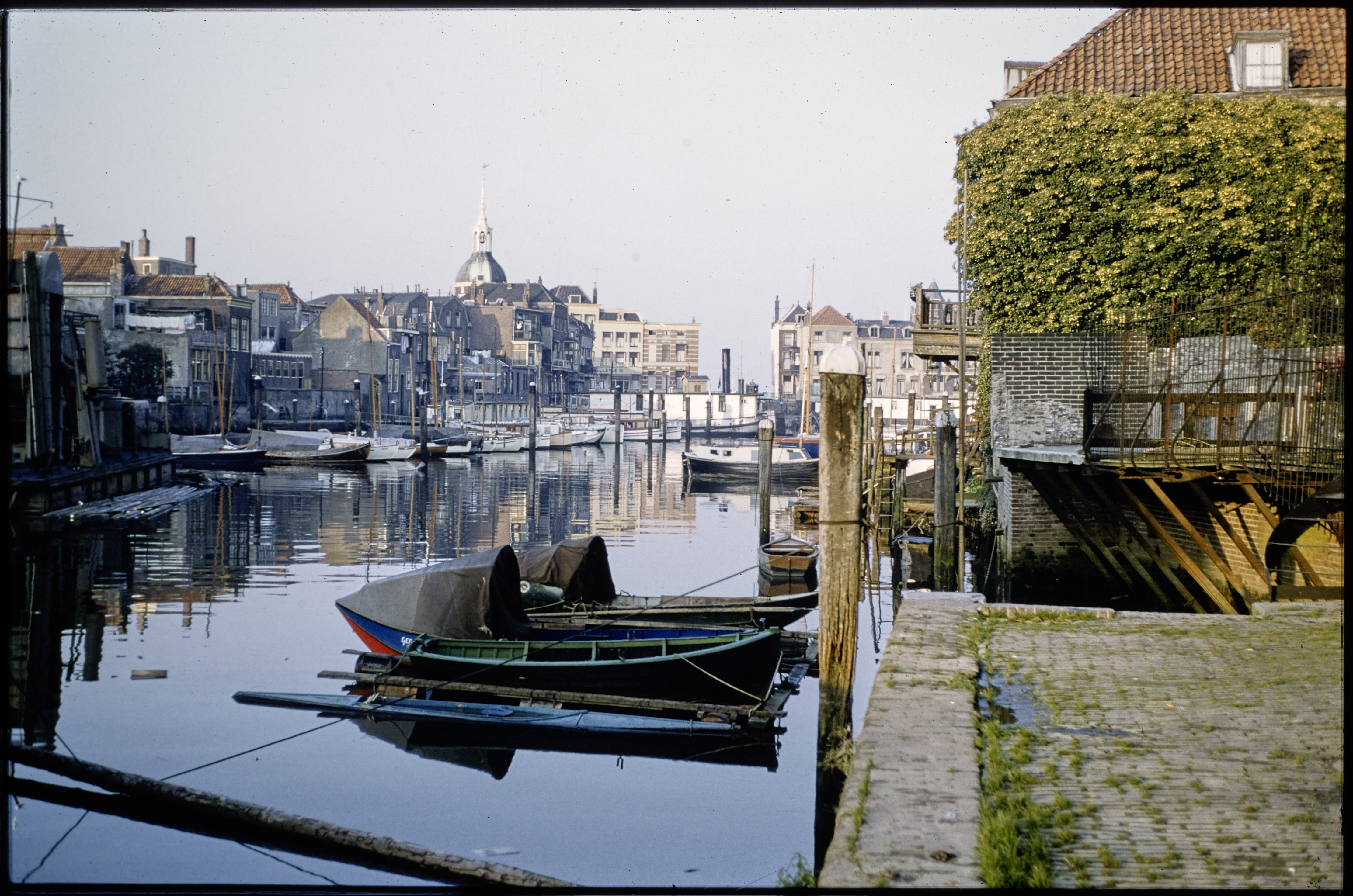 Zo te zien is deze opname van voor het doortrekken van de Taankade tot de Nieuwbrug. De kade vooraan is nog deel van de Houtsteiger. De opname zal ergens voor 1960 gemaakt zijn.