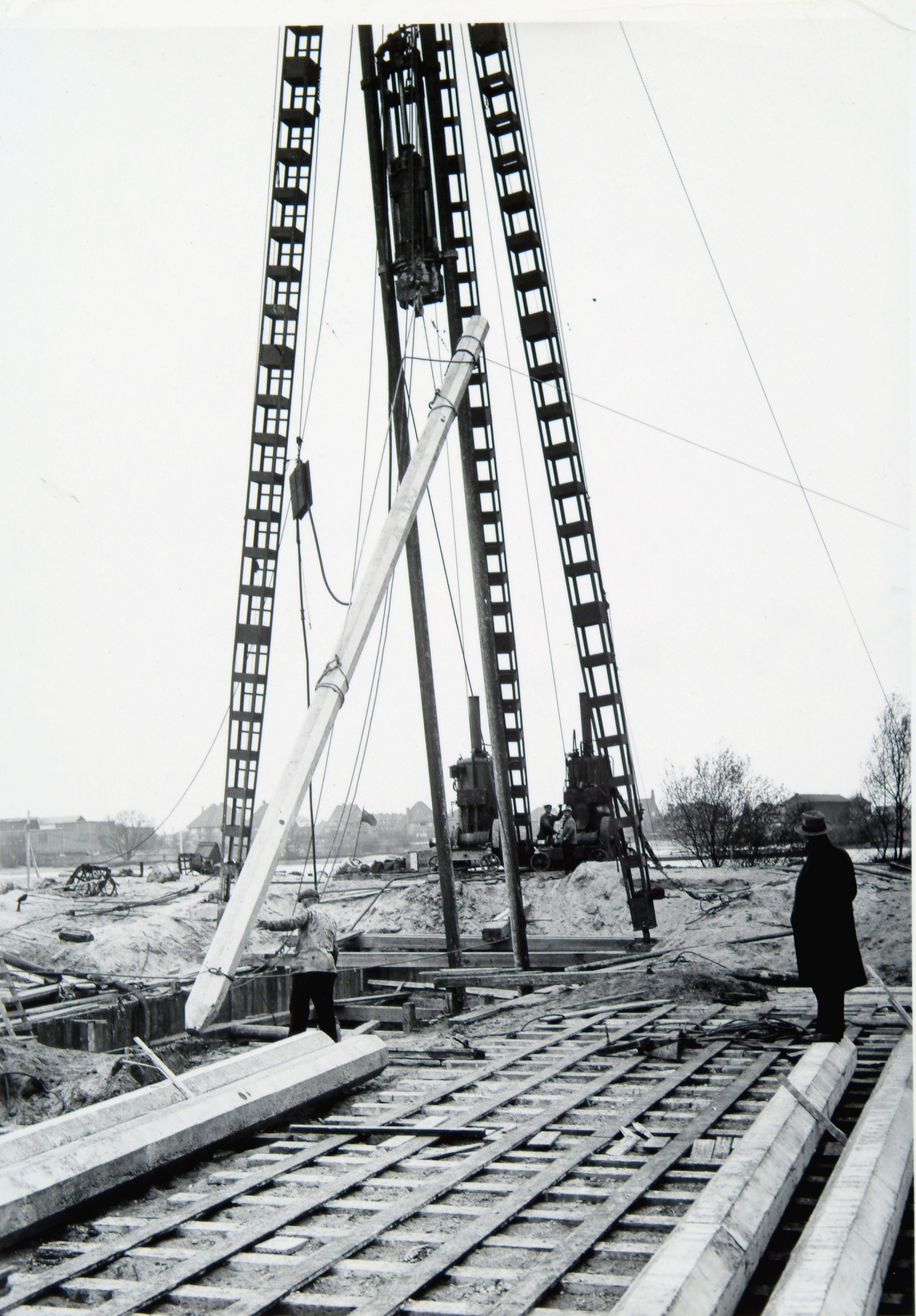 Heiwerkzaamheden bij de aanleg van de Gemeentelijke Vuilverbranding aan de Maasstraat.