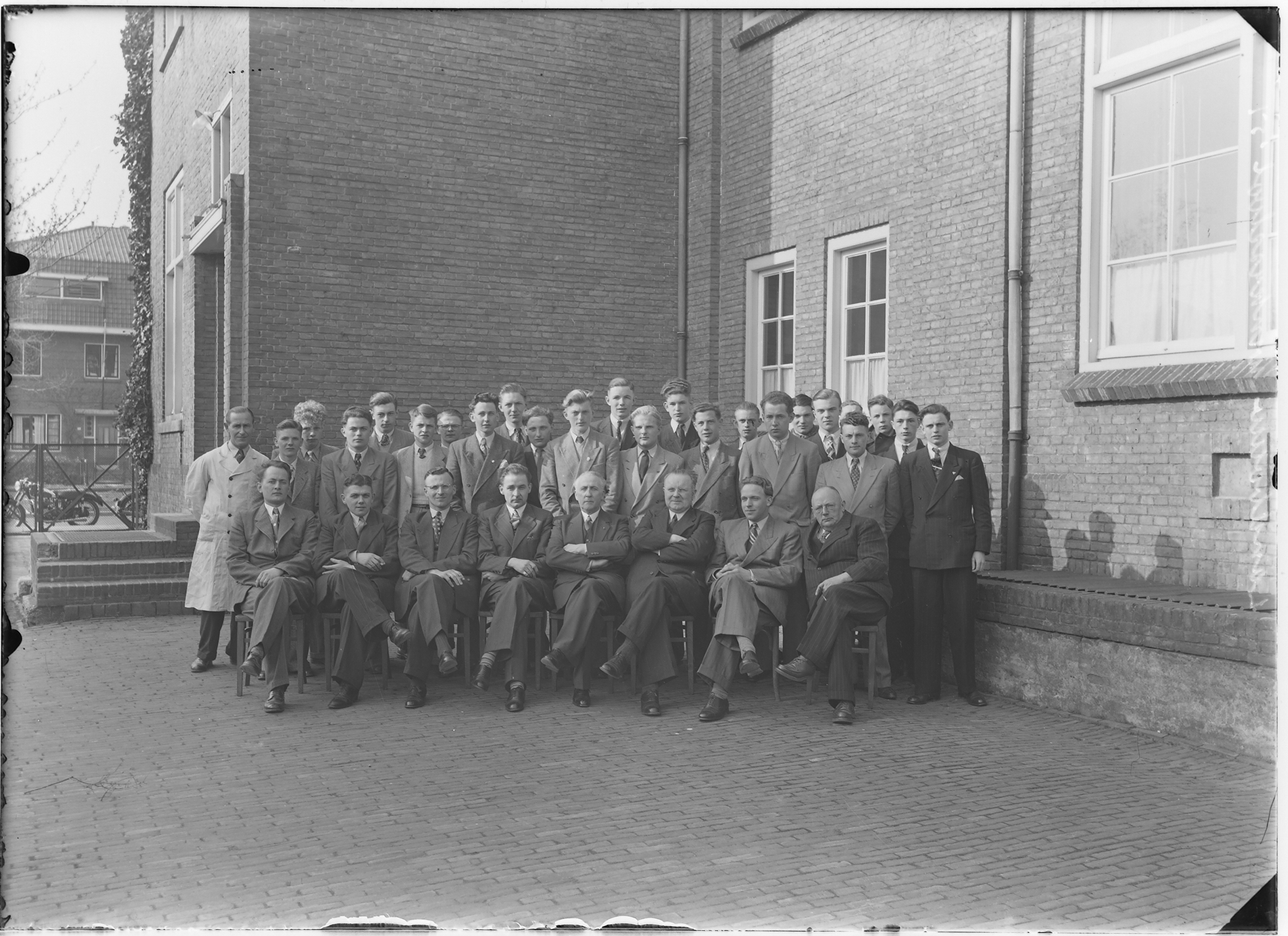 - Groepsfoto van de directeur en docenten van de Rijks landbouwwinterschool aan de Oranjelaan