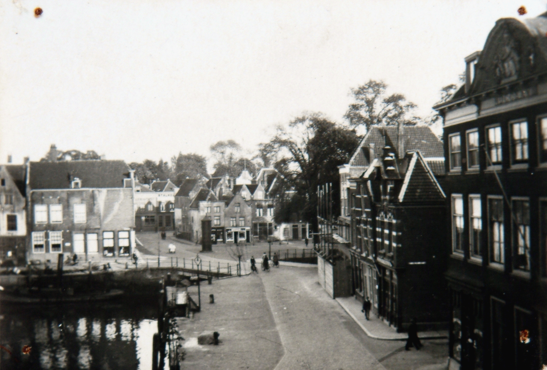 Van voor naar achter: het Vlak, de Roobrug en de Aardappelmarkt. Links, langs het water …