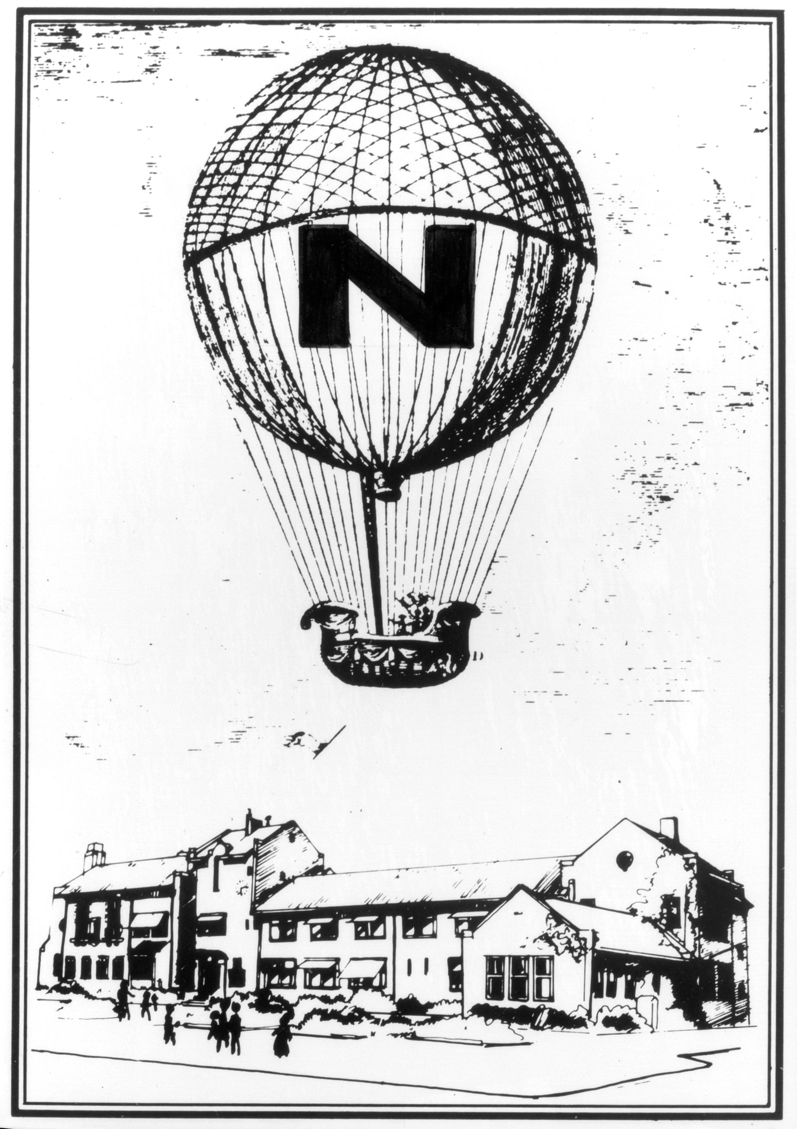 - Zwijndrecht, winkelcentrum Noord. Tekening van een ballonopstijging.