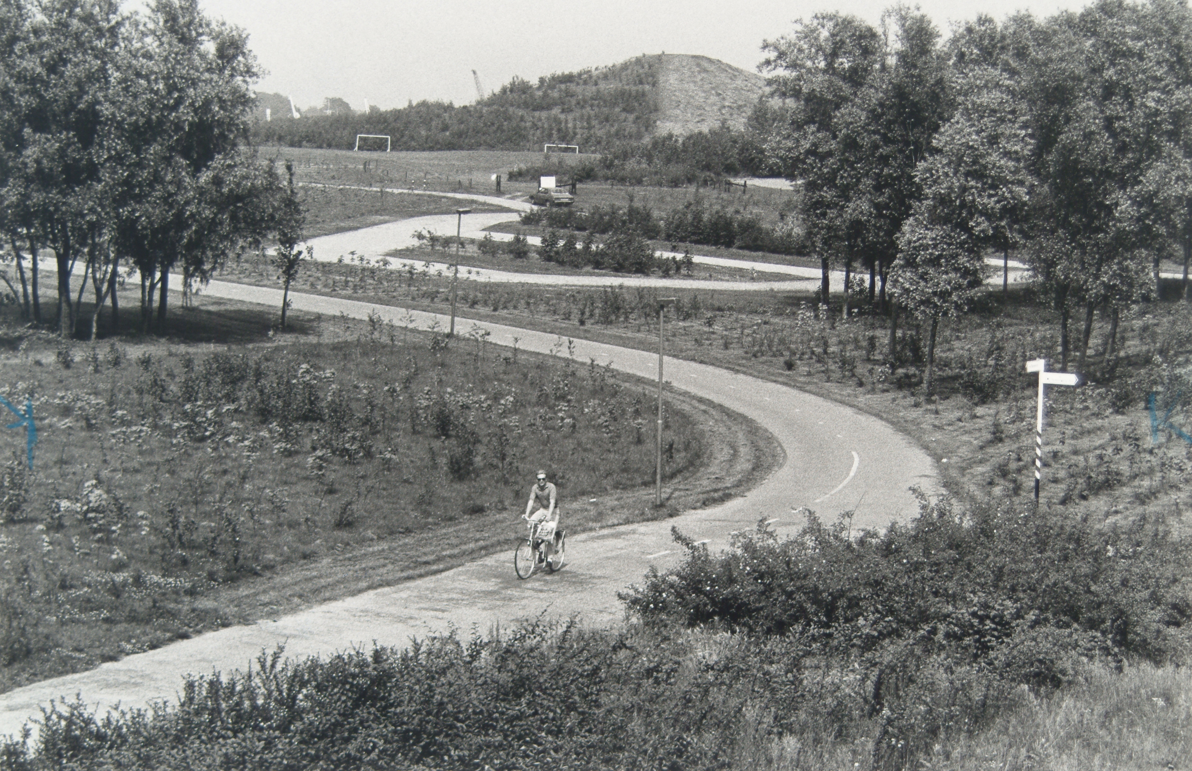 Bocht in de Baanhoekweg bij de wielerbaan in recreatiepark Crayenstein