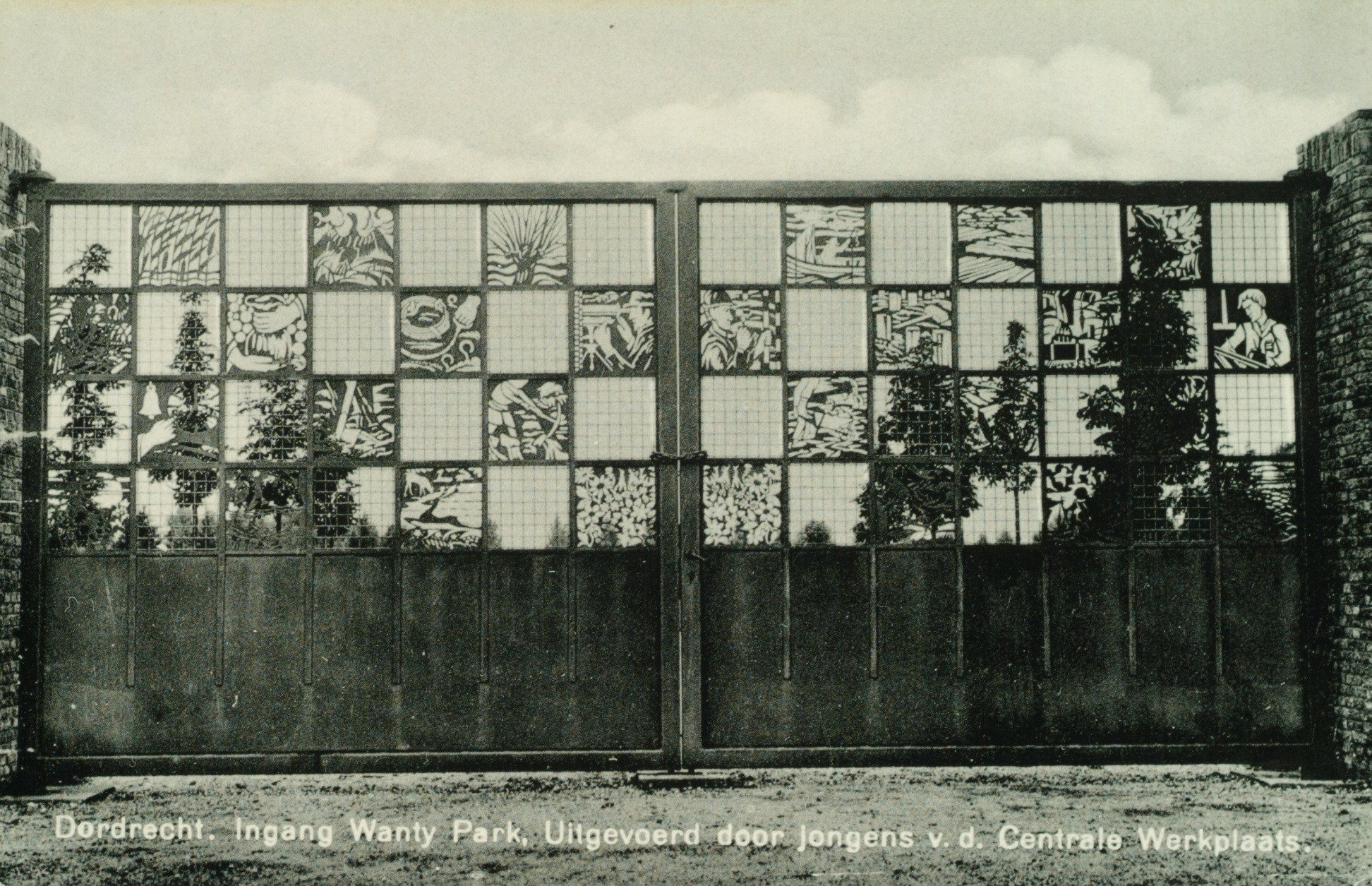 Dit hek bevat symbolische voorstellingen van de wording en voltooiing van het Wantijpark, zie voor verdere uitleg link: https://www.ad.nl/dordrecht/dit-bijzondere-hek-is-vandaag-de-dag-lelijk-groen-geschilderd-en-staat-bijna-altijd-open~a45af74c/