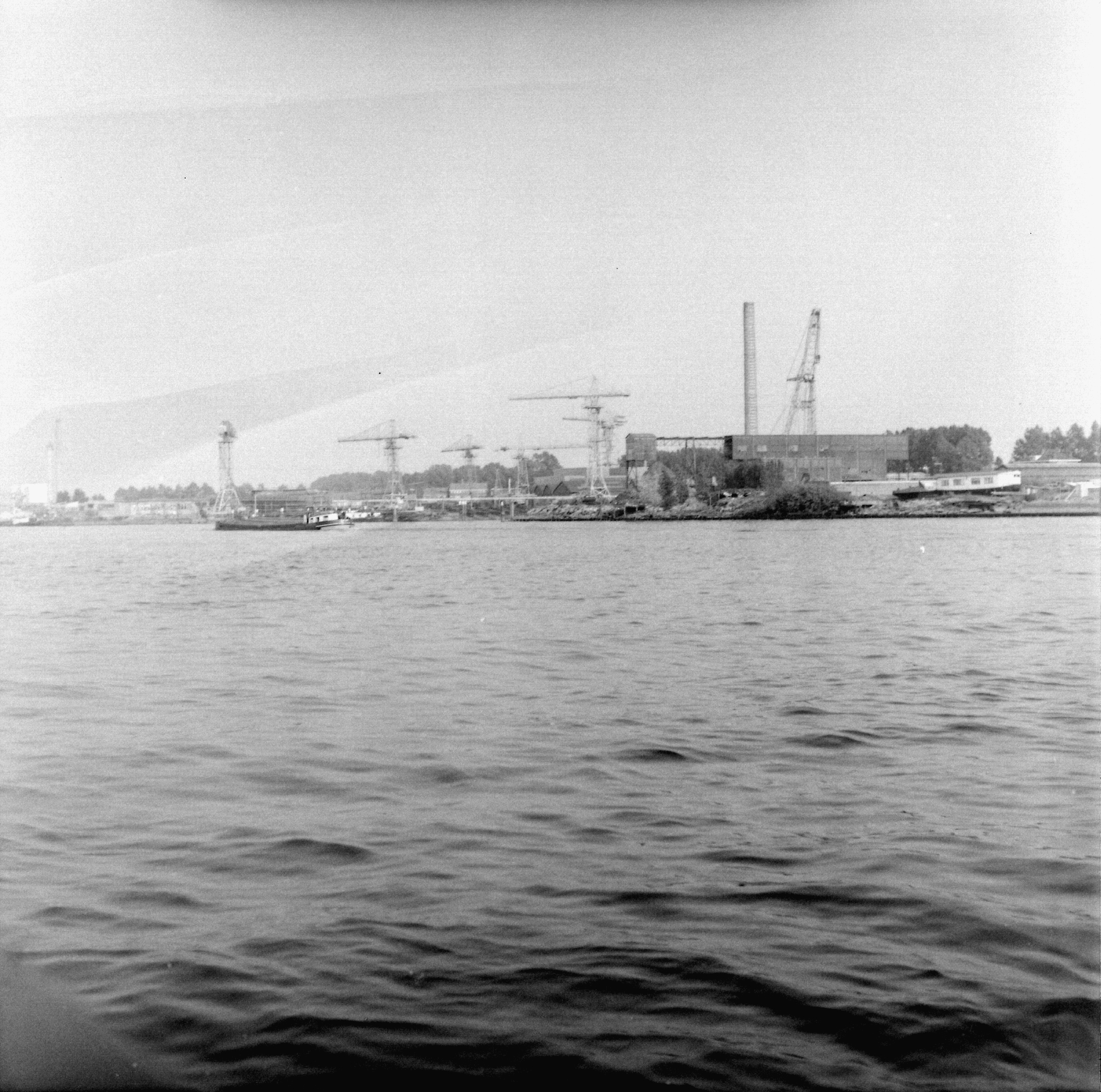 Op de achtergrond links is heel vaag de Centrale Merwedehaven te zien met de schoorsteen van CM 4 in aanbouw en deze was eind augustus 1967 op hoogte.