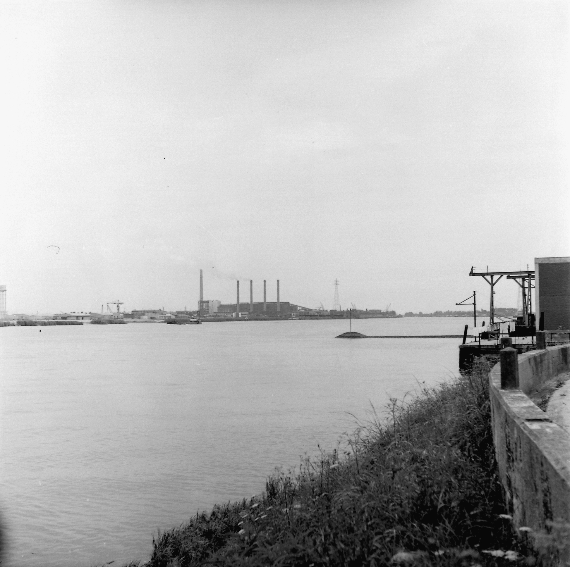 Deze foto is rond begin 1967 gemaakt. Het ketelhuis van Centrale Merwedehaven 4 is in aanbouw. De schoorsteen - de zesde van de stroomfabriek - bereikt eind aug 1967 het hoogste punt. In 2000 was het hele complex uit het stadsbeeld verdwenen.