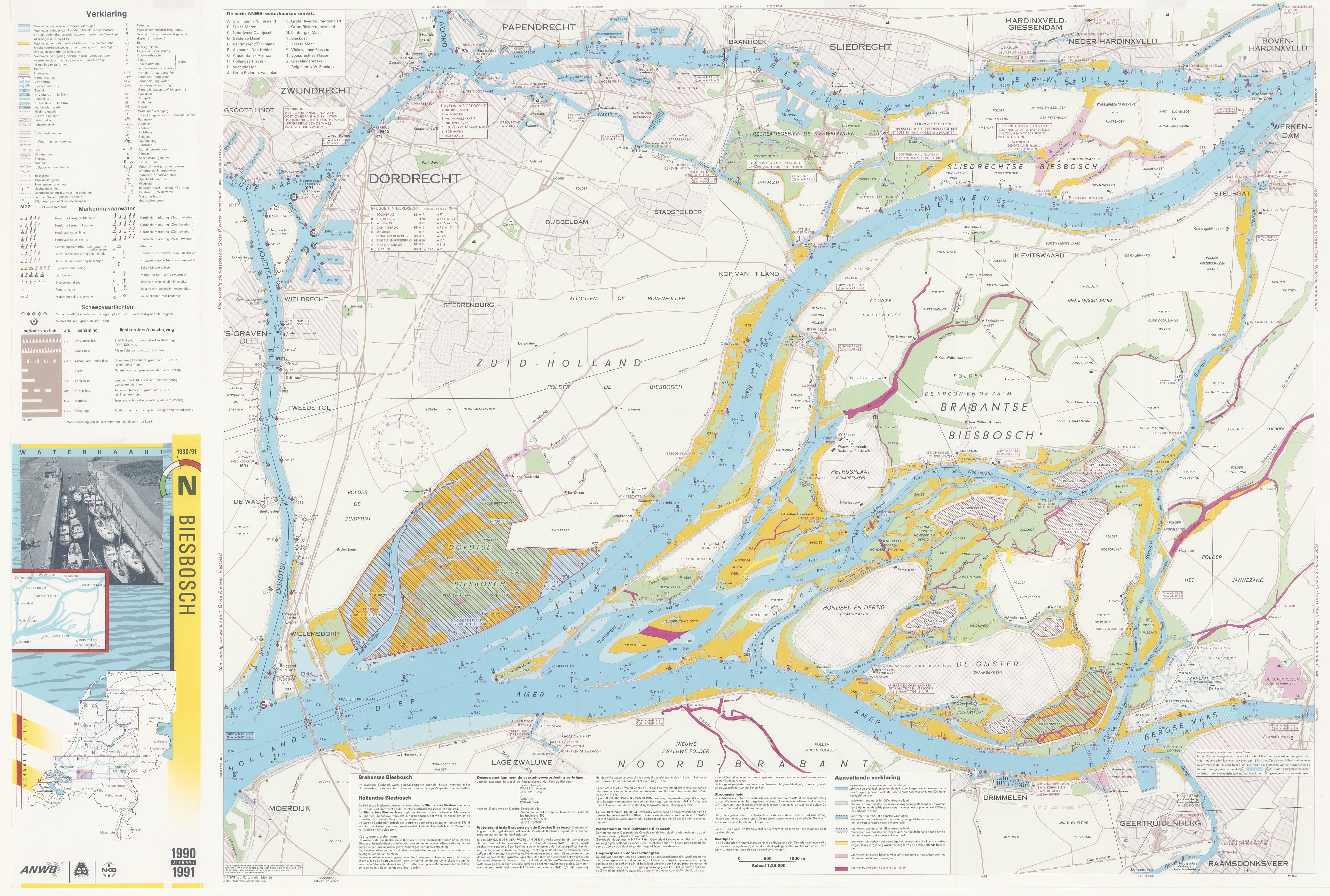 - Waterkaart van de Zuid-Hollandse en Brabantse Biesbosch. ANWB-uitgave 1990 - 1991.