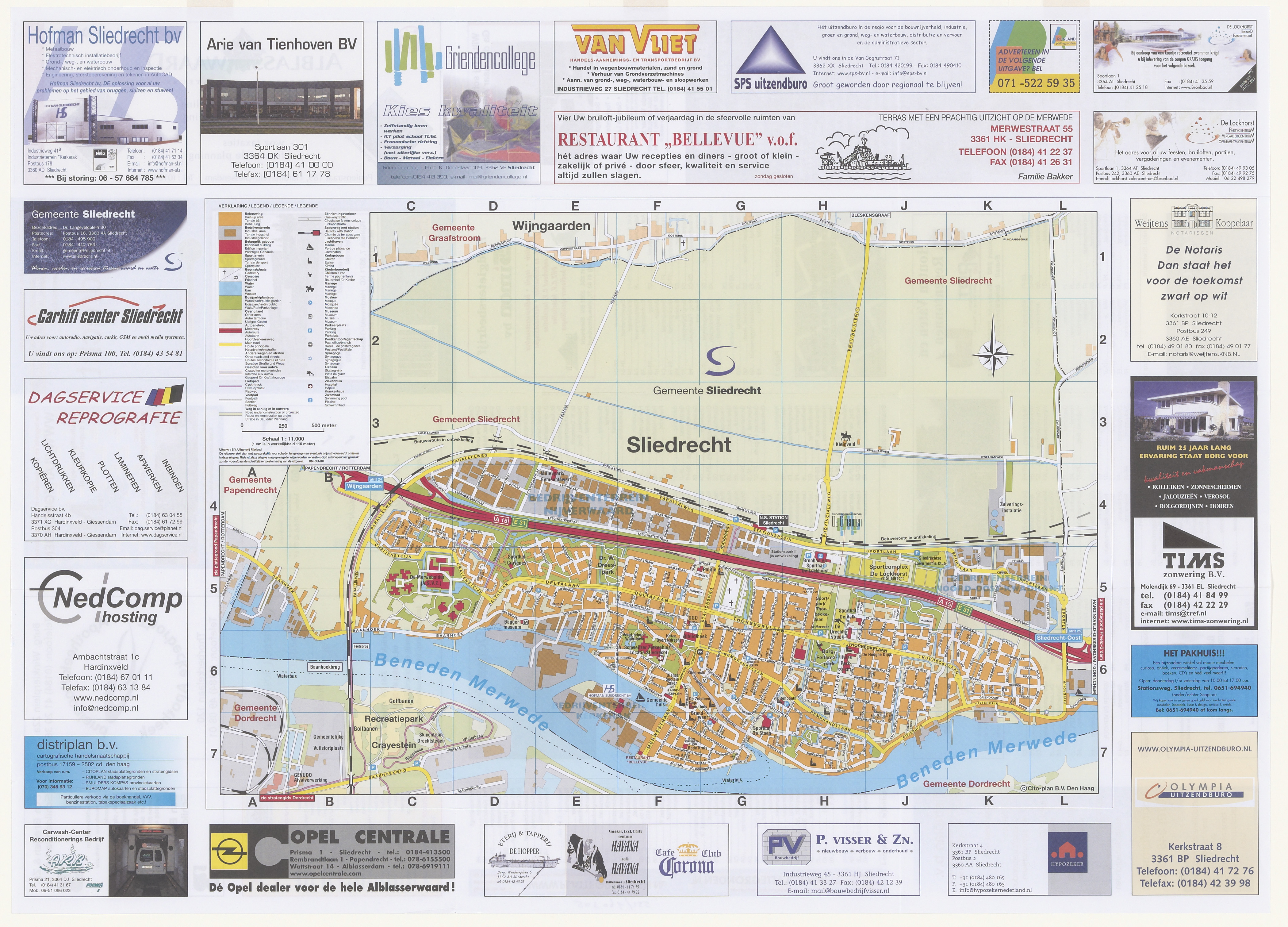 - Plattegrond van Sliedrecht met legenda en reclame, 22e editie.