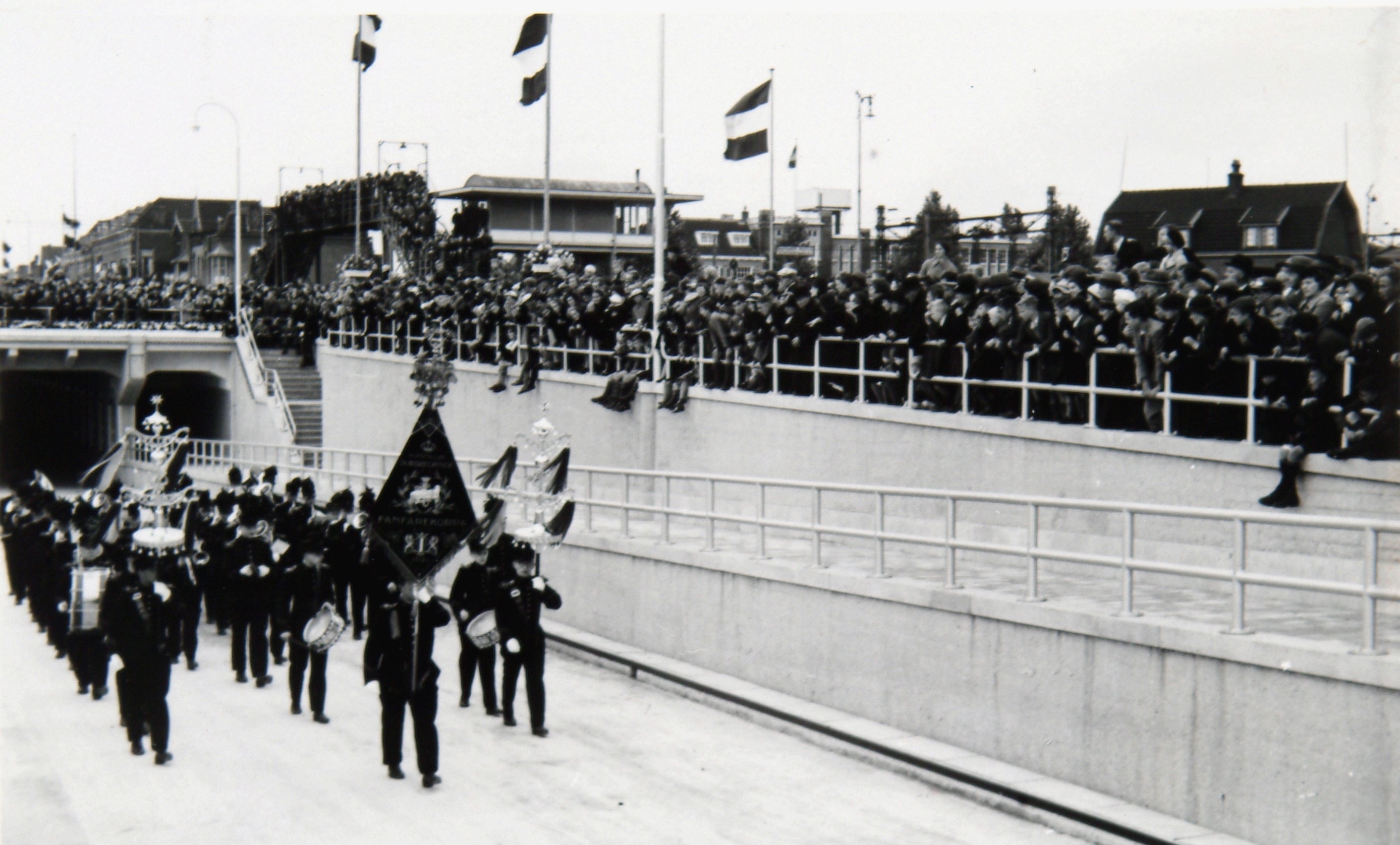 - fanfarekorpsen openingen optochten publiek / toeschouwers tunnels voetgangersbruggen