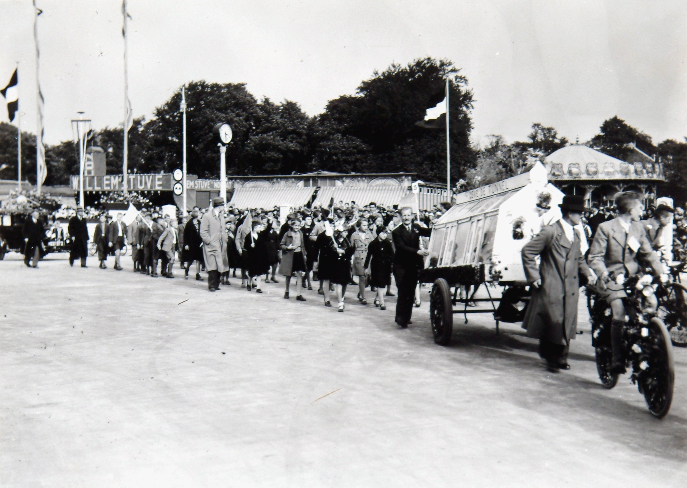 - Optocht aan de zuidkant van de pas geopende Krispijntunnel, o.a. met schoolkinderen, muziekkorpsen en reclamewagens. Kermisattracties staan vlakbij de tunnel.