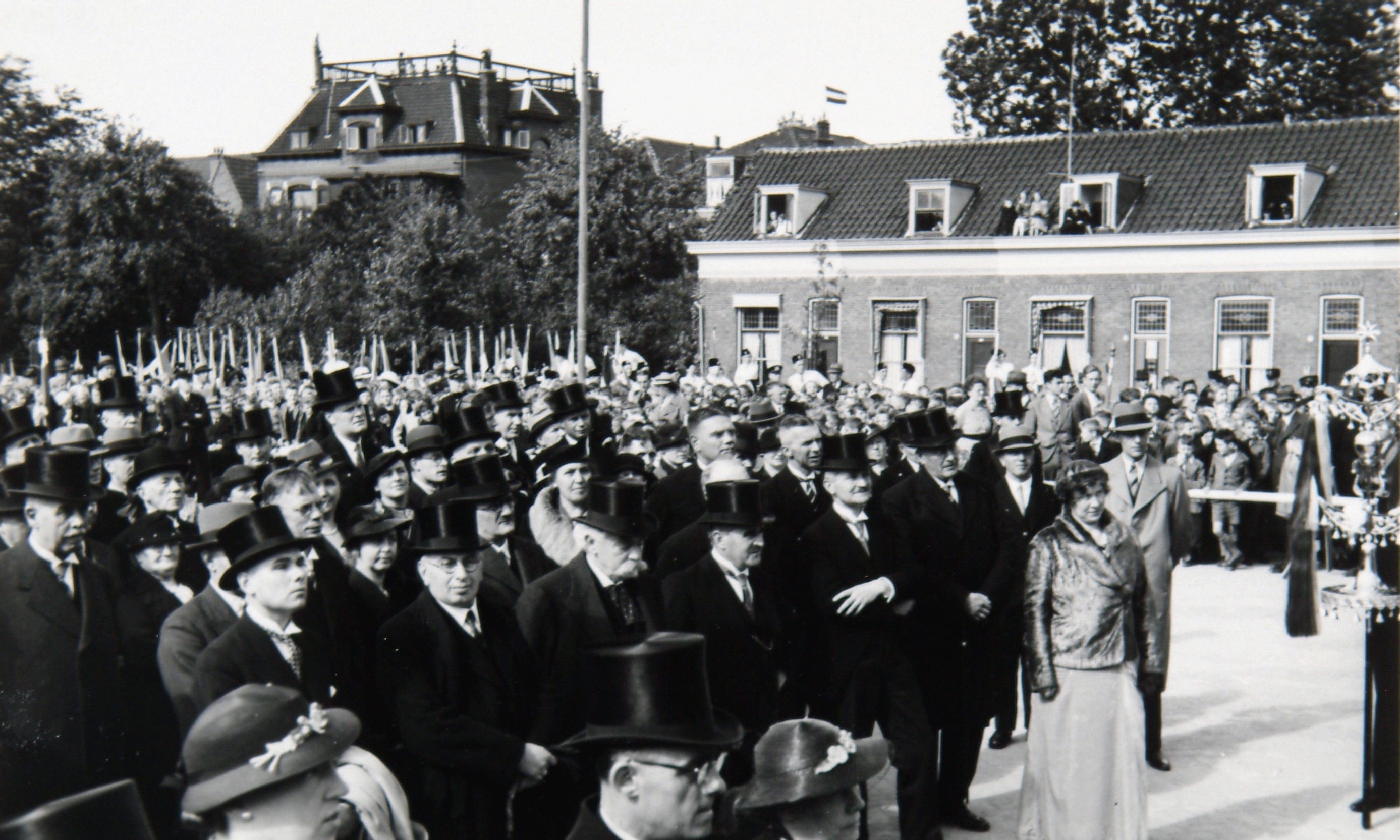 Genodigden en publiek bij de opening van de Krispijntunnel nabij de Kilwijkstraat.