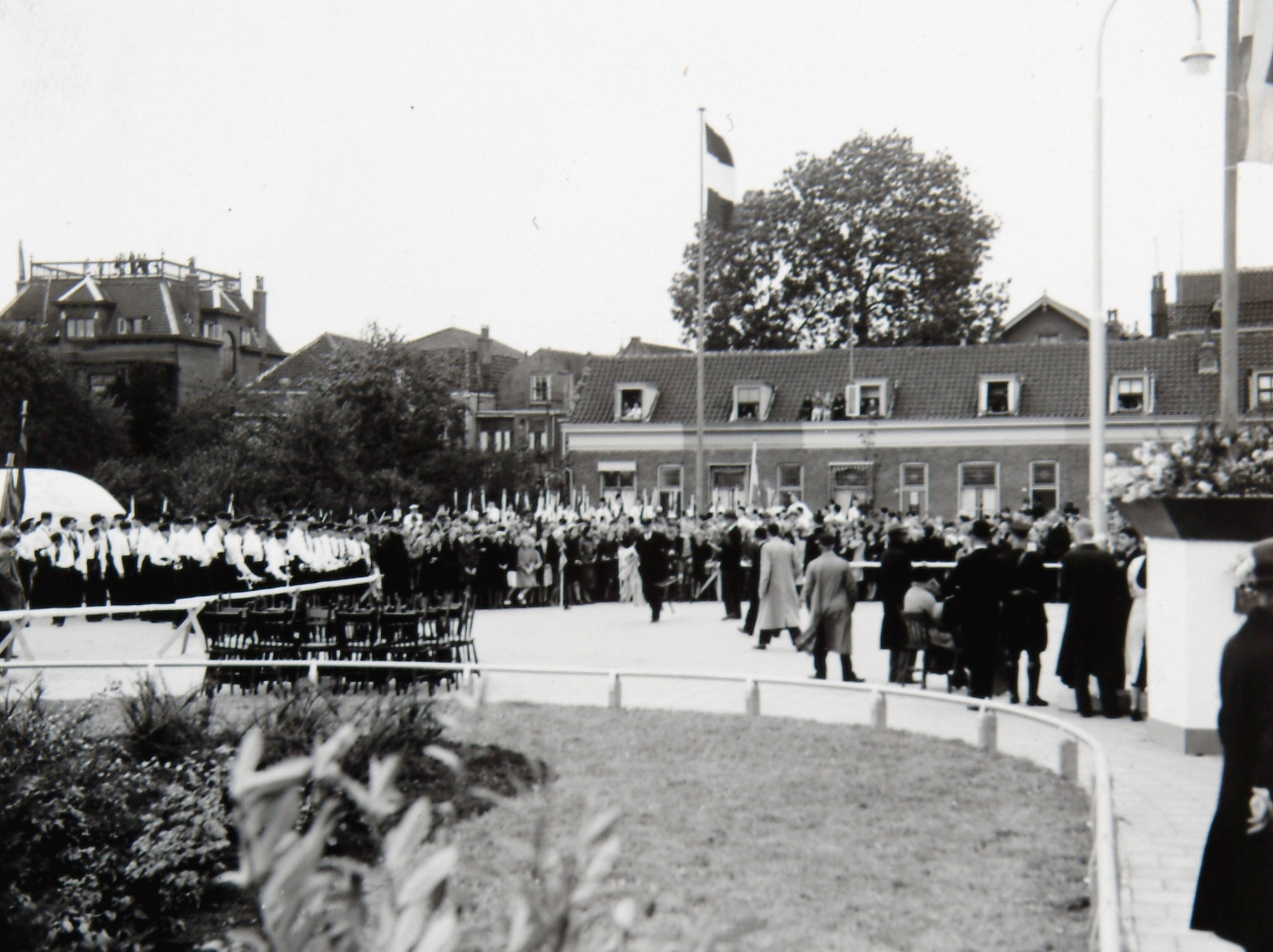 - Publiek en deelnemers aan de optocht bij de opening van de Krispijntunnel nabij de Kilwijkstraat.