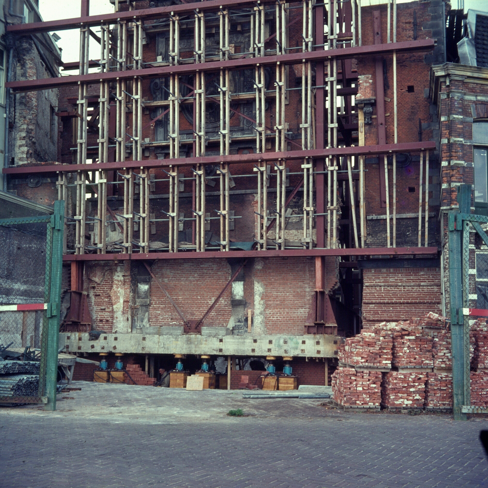 De rivierzijde van de Groothoofdspoort tijdens de renovatie.