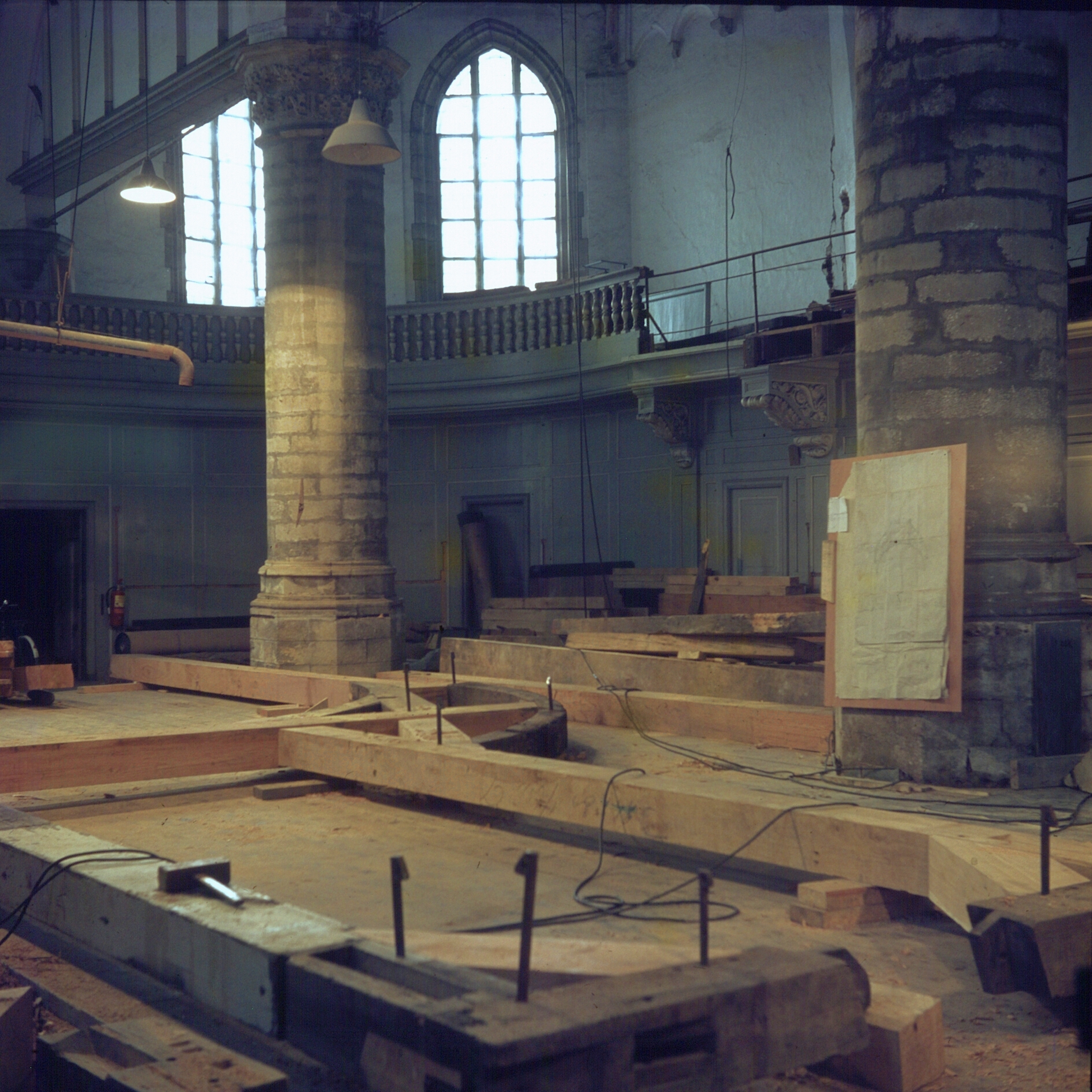 Het herstel van de koepel van de Groothoofdspoort kon plaatsvinden in de Nieuwkerk. …