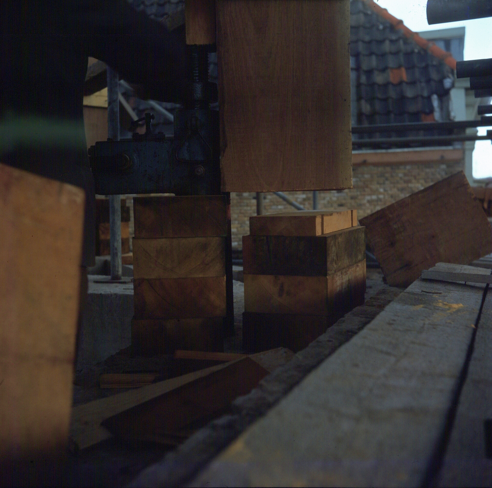 - Werkzaamheden aan de koepel van de Groothoofdspoort, tijdens de restauratie.