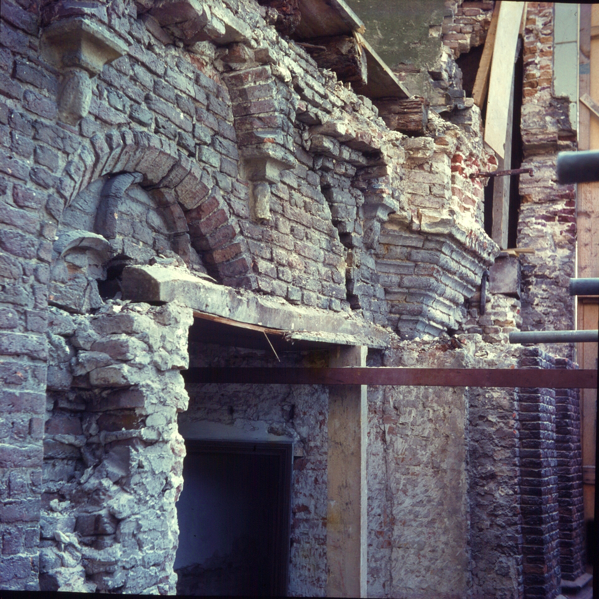 De middeleeuwse muren van de Groothoofdspoort voor de restauratie.