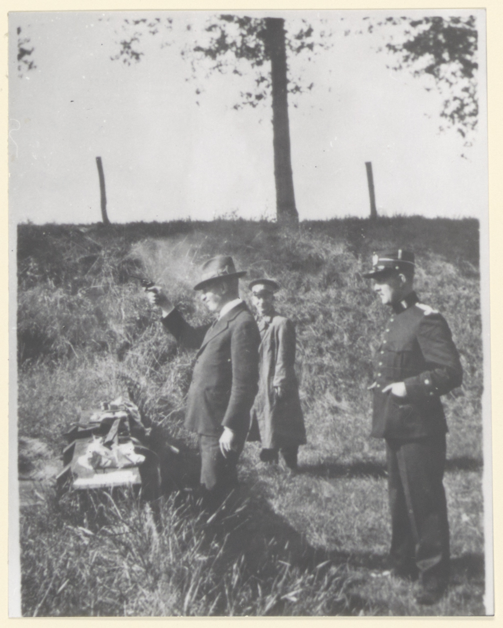 - Schietoefeningen door de gemeentepolitie op de schietbaan tussen Wantijpark en Noordendijk. Rechts insp. G. van Zeben.