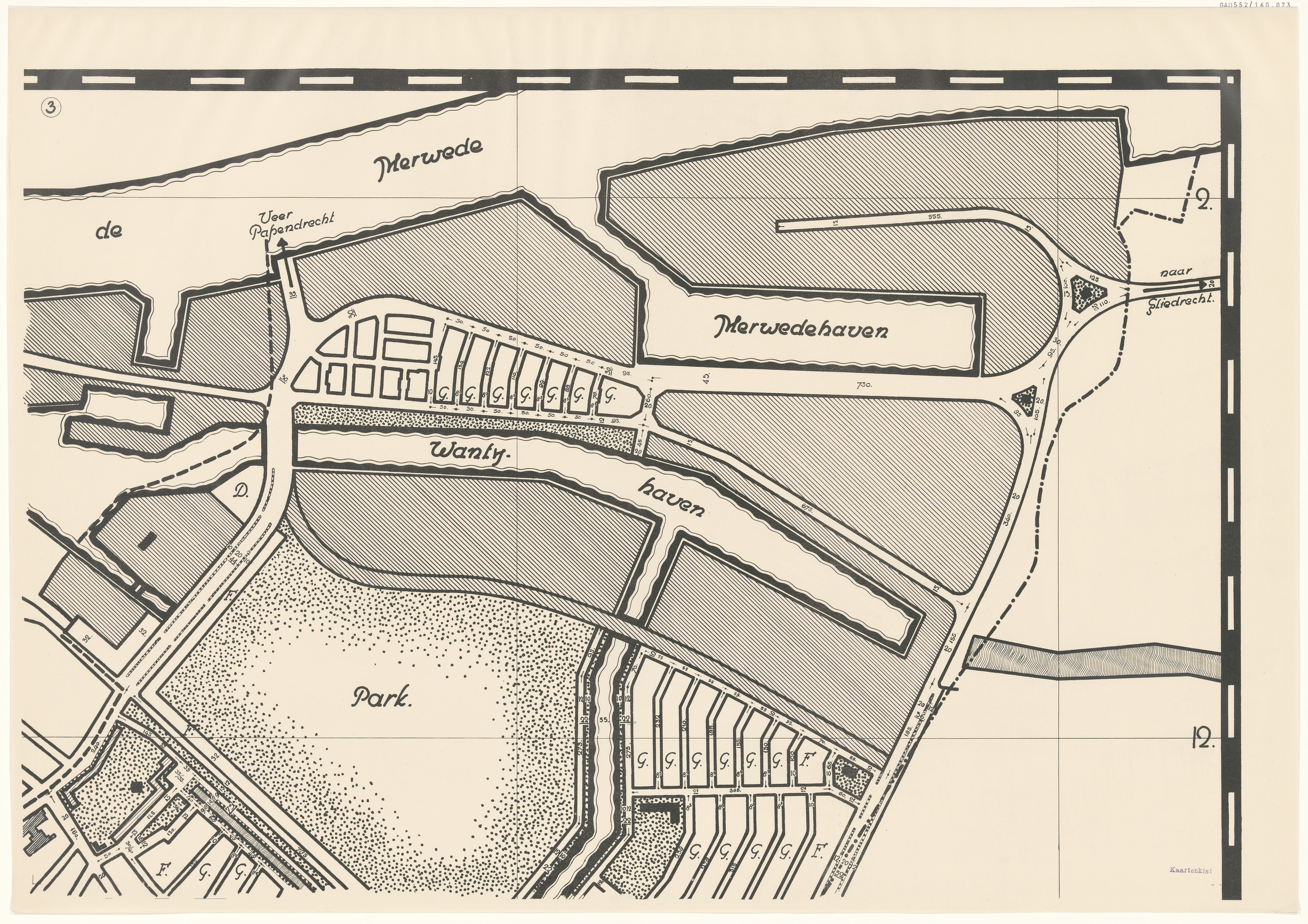 Uitbreidingsplan van Dordrecht in 9 bladen, met legenda.