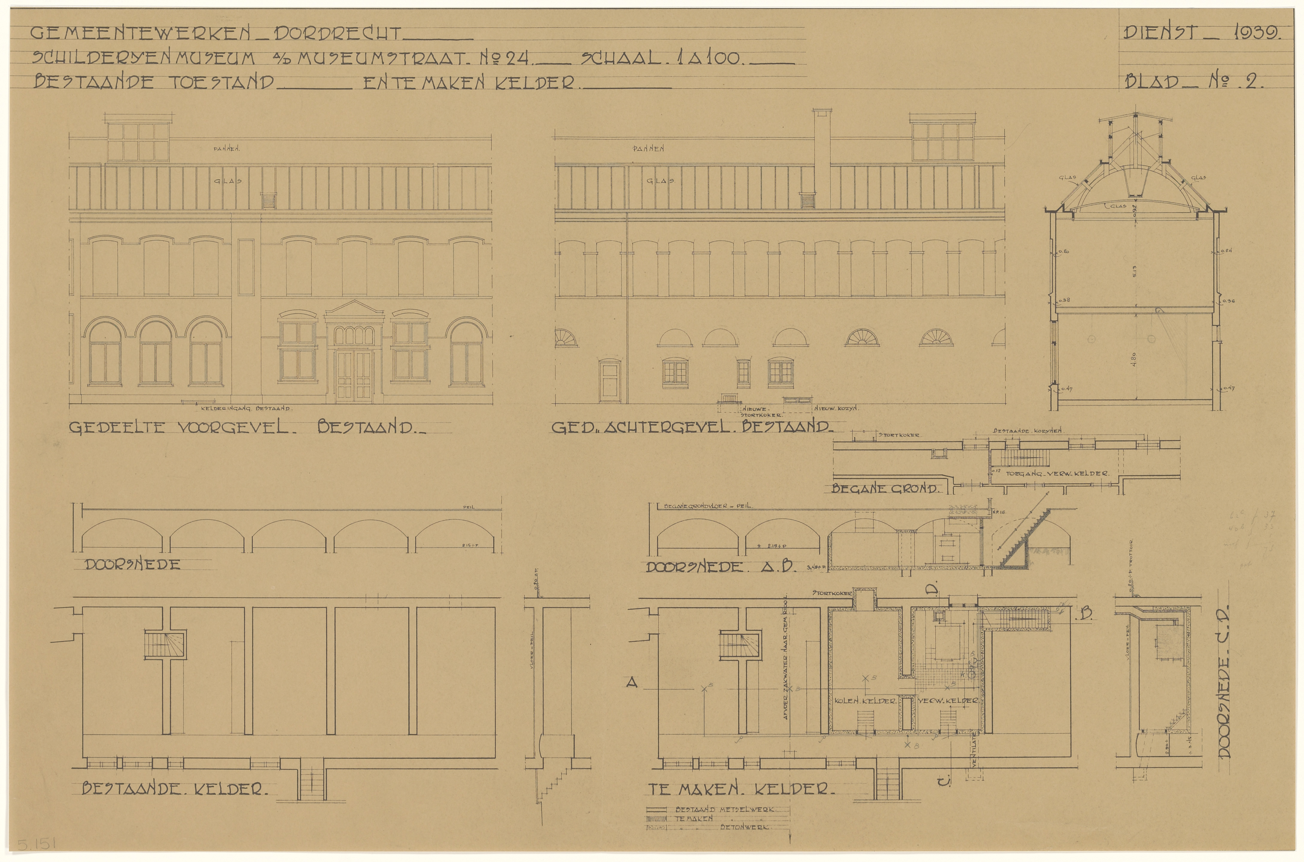 Bouwtekening van een verbouwing van het Dordrechts Museum aan de Museumstraat.