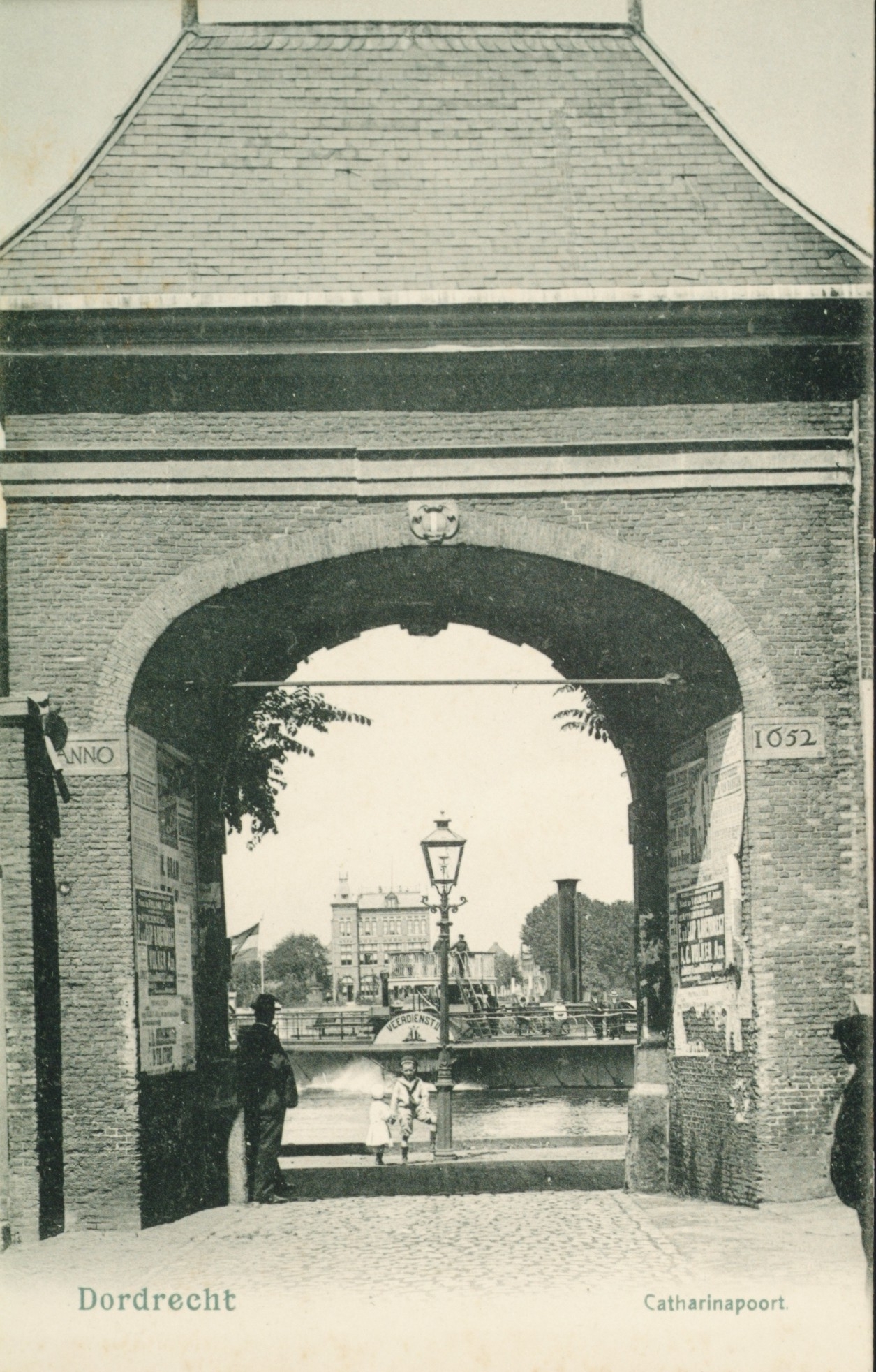 - Korte Engelenburgerkade richting Catrijnepoort. Op de rivier ligt een stoomraderboot van de veerdienst op Zwijndrecht.