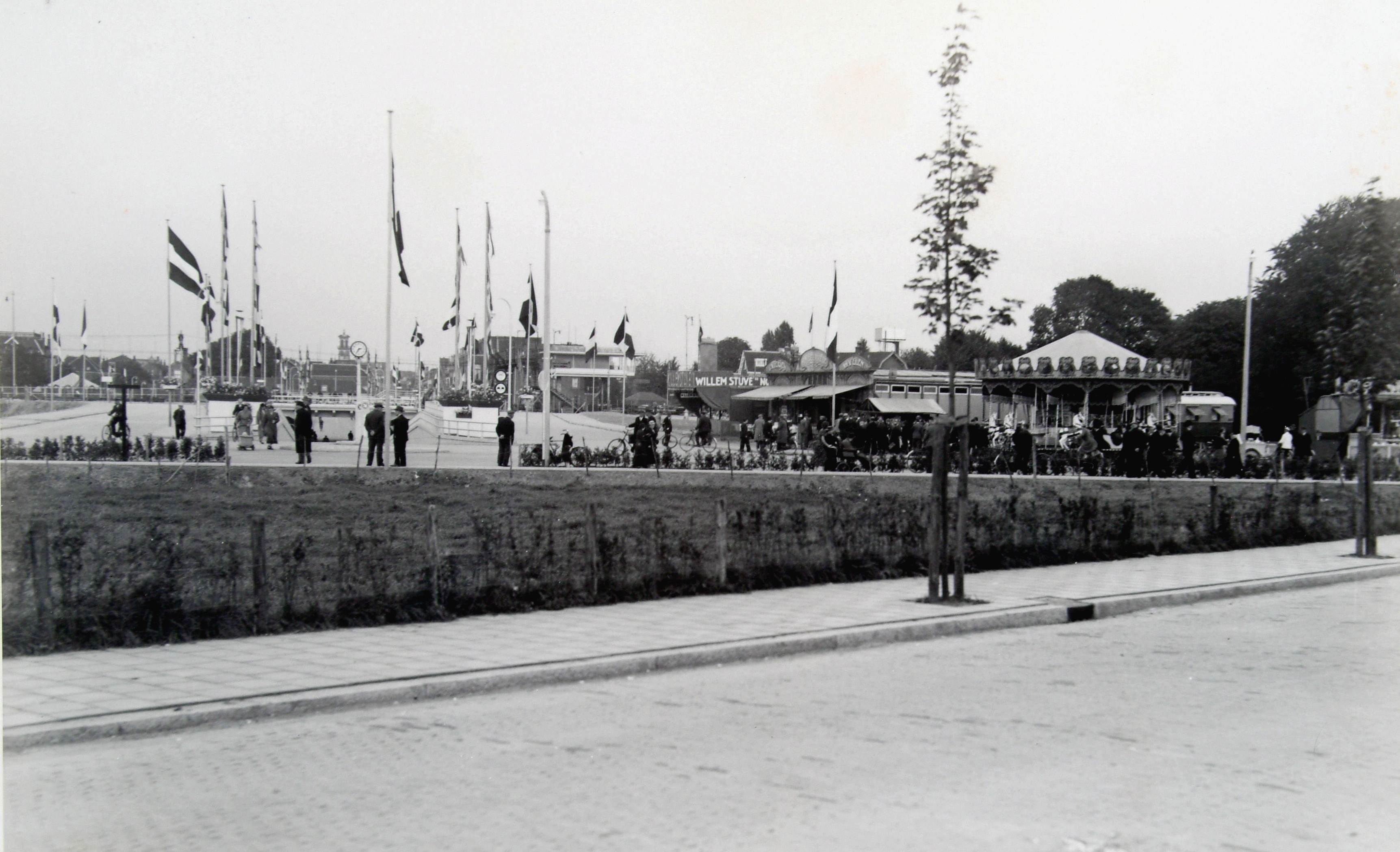 Kermisattracties staan opgesteld in de omgeving van de Krispijntunnel in de week na de opening, gezien vanuit de Van Baerlestraat.