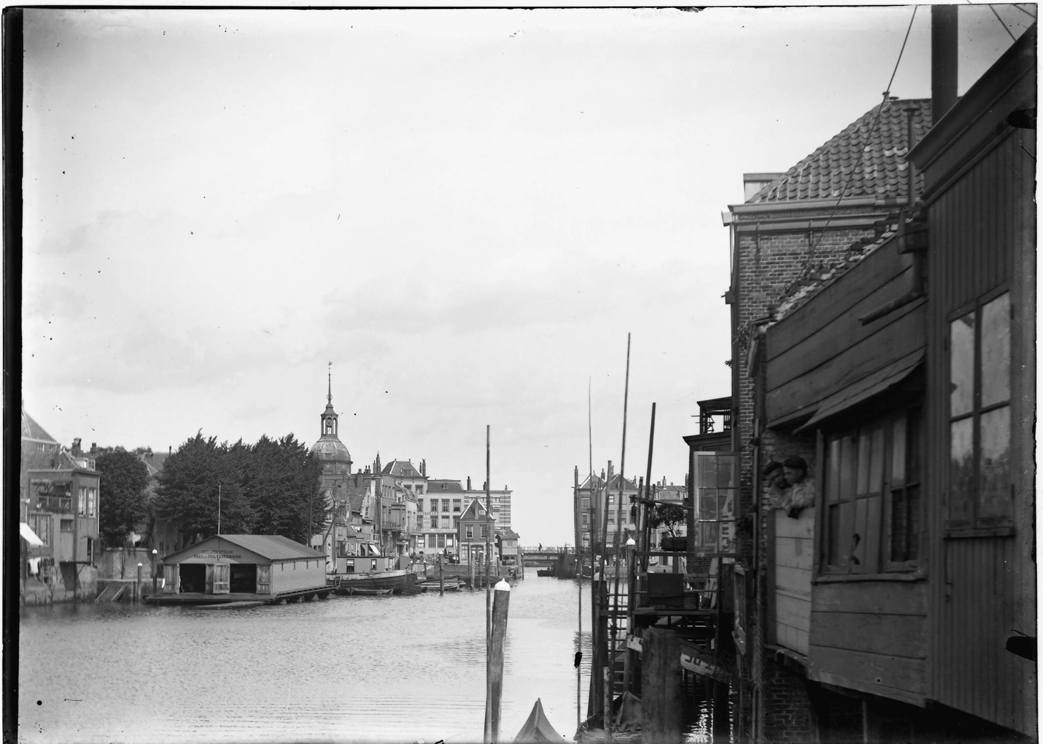 - Wijnhaven met het botenhuis van de Koninklijke Dordrechtsche Roei- en Zeilvereeniging. Op de achtergrond de Groothoofdspoort, hotel Bellevue en de Boombrug. De huizen rechts staan aan de Taankade.